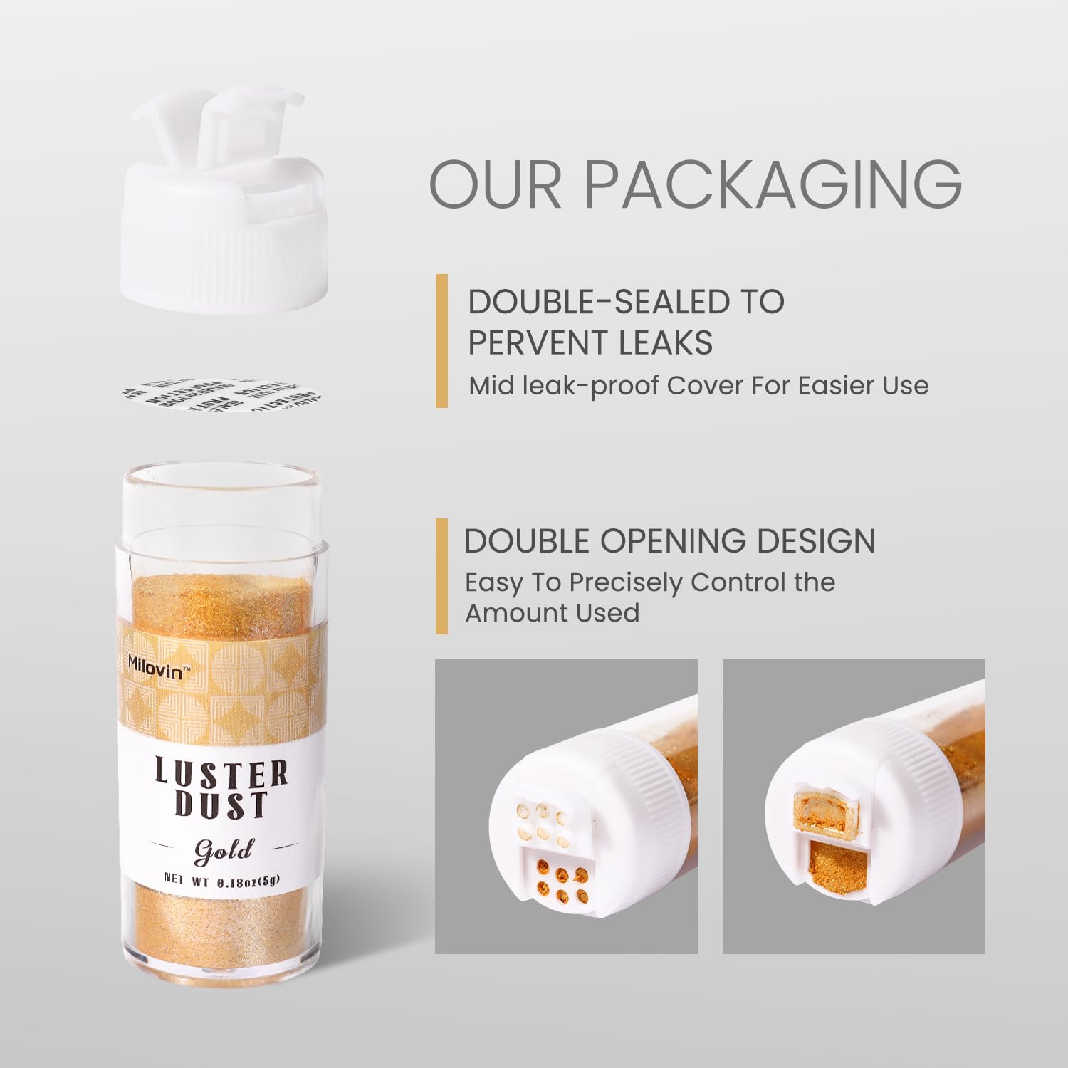 • Easy to Use: You just need to tap the bottle lightly, then sprinkle the edible luster dust on top of your food or drink. (The powder will be affected during transportation, It may seem smaller, but the weight of the product is right)