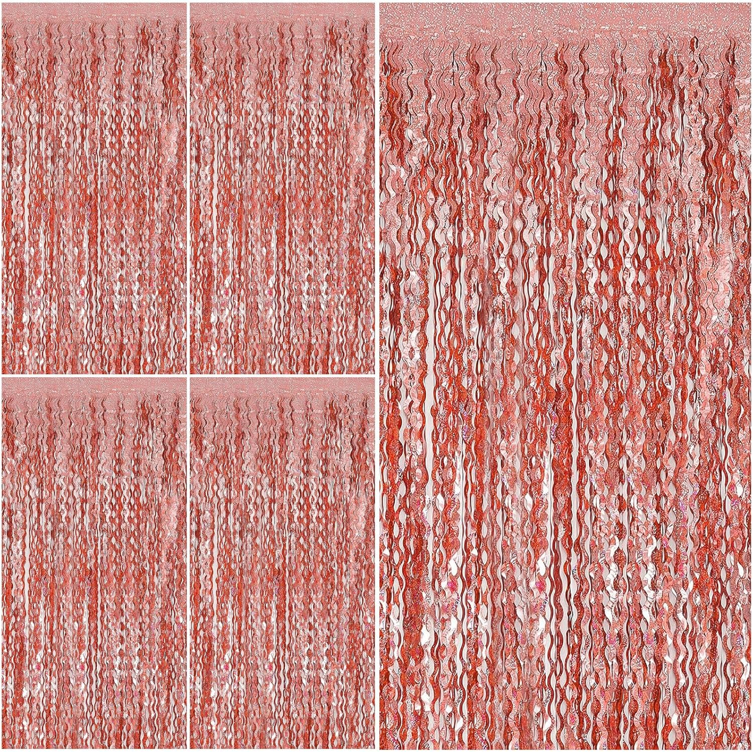 • Rose Gold Birthday Decorations:5 Pack, each curtains size is 3.28 ft x 6.56 ft, enough length foil fringe backdrops are perfect for the door, wall and table,feel free to cut to any length you want.