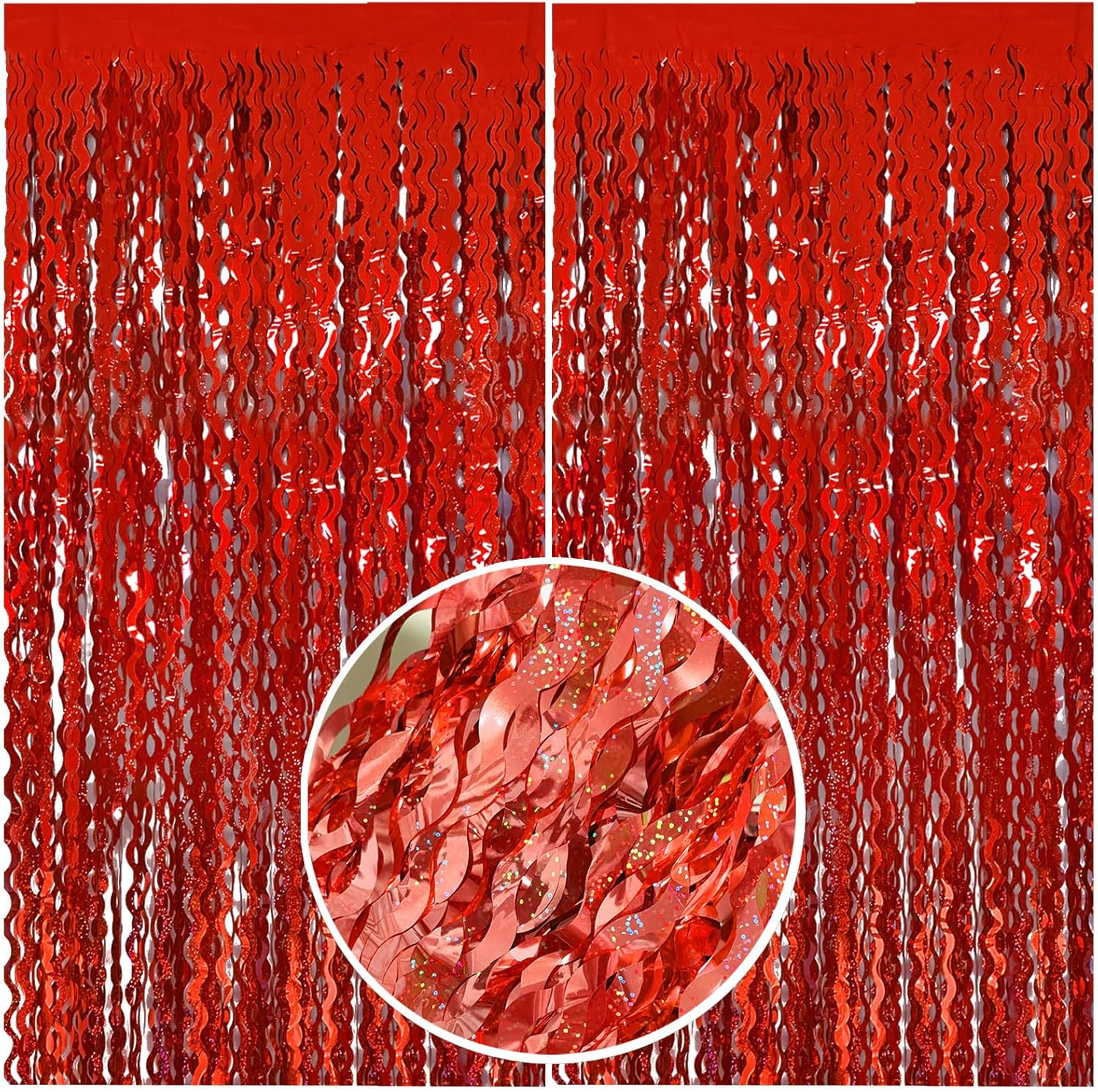 Red Streamers Tinsel Foil Fringe Curtains Wavy for Parties Sparkle Metallic Wavy Foil Fringe Backdrop Curtain for Party Decorations Photo Booth Props Birthday Graduation Wedding Valentines Decor