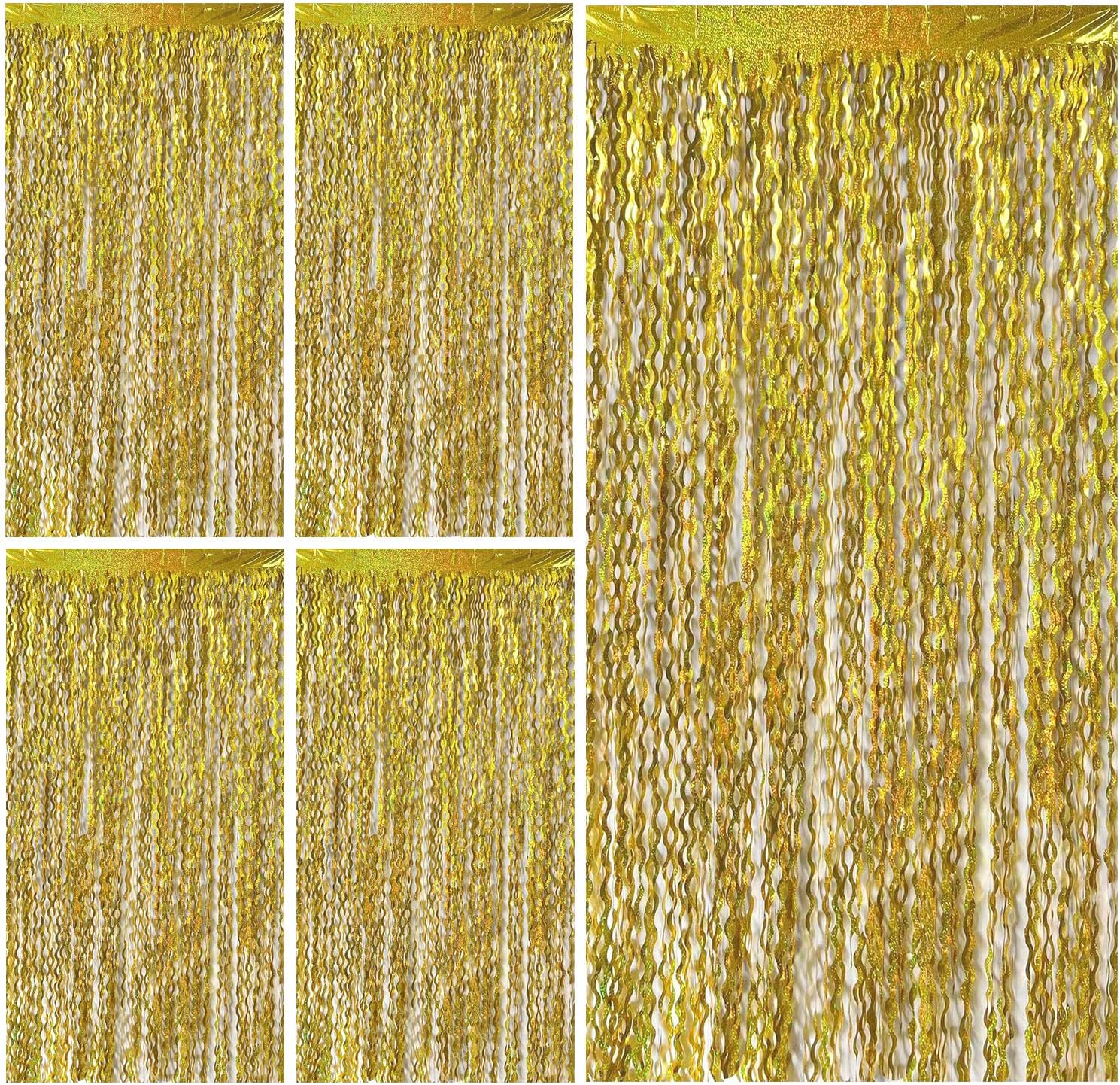• Gold Backdrop :5 Pack, each curtains size is 3.28 ft x 6.56 ft, enough length foil fringe backdrops are perfect for the door, wall and table,feel free to cut to any length you want.