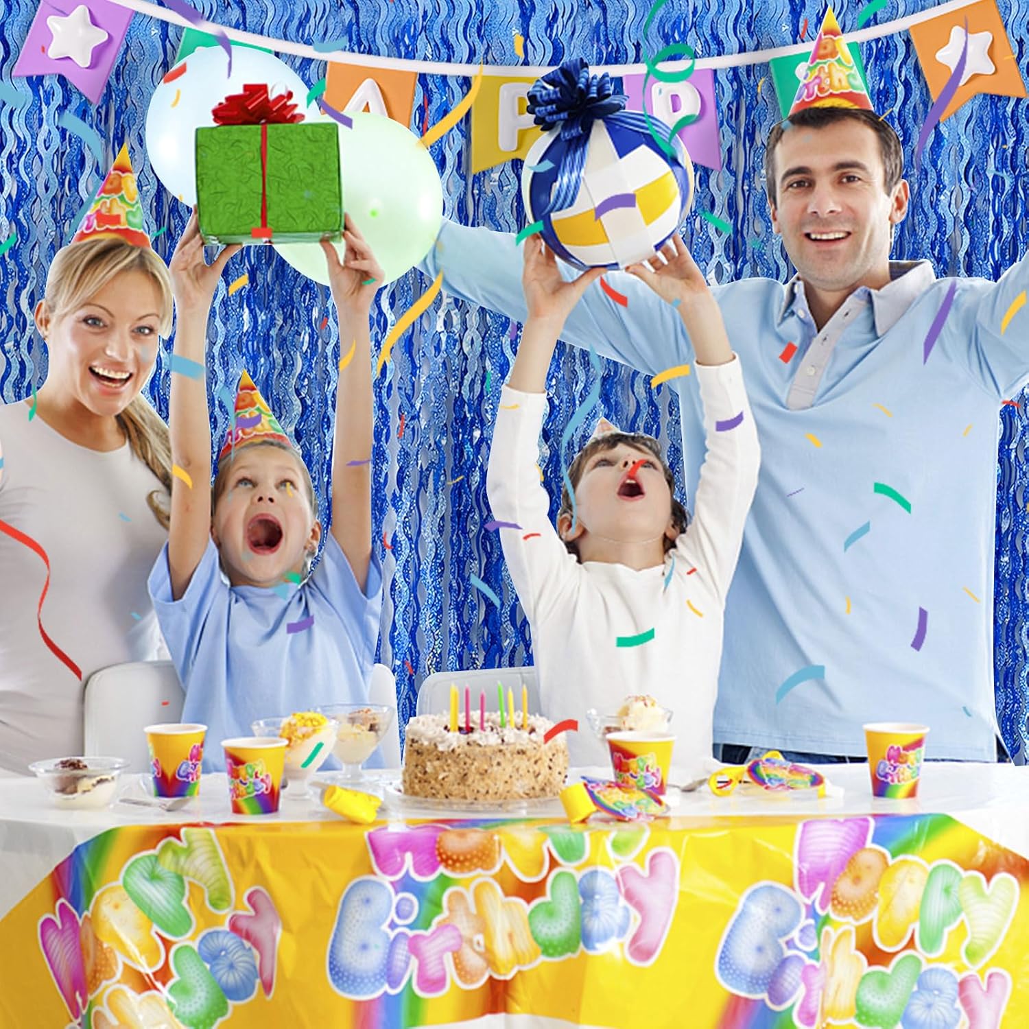 • Blue Birthday Decorations:2Pack, each curtains size is 3.28 ft x 6.56 ft, enough length foil fringe backdrops are perfect for the door, wall and table,feel free to cut to any length you want.
