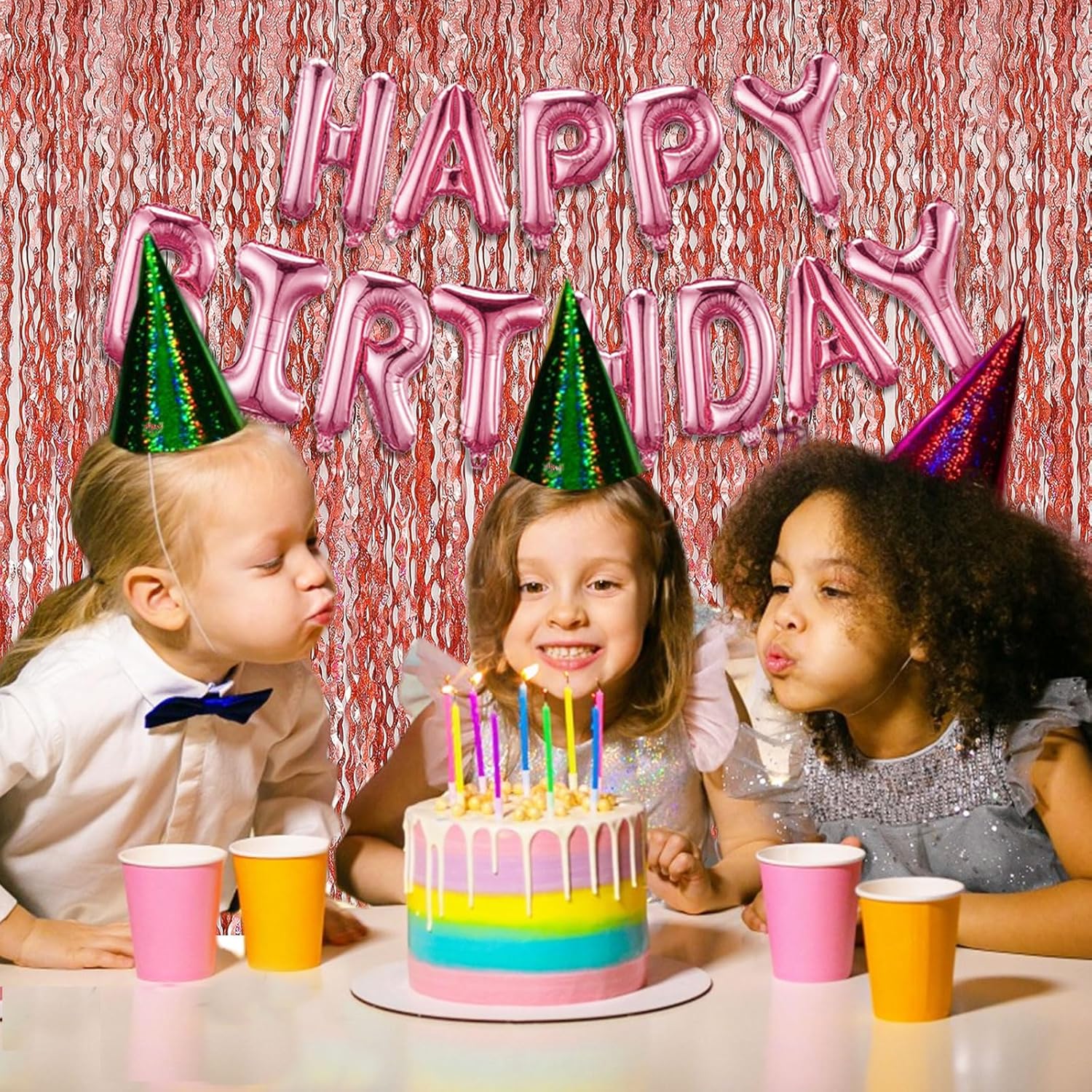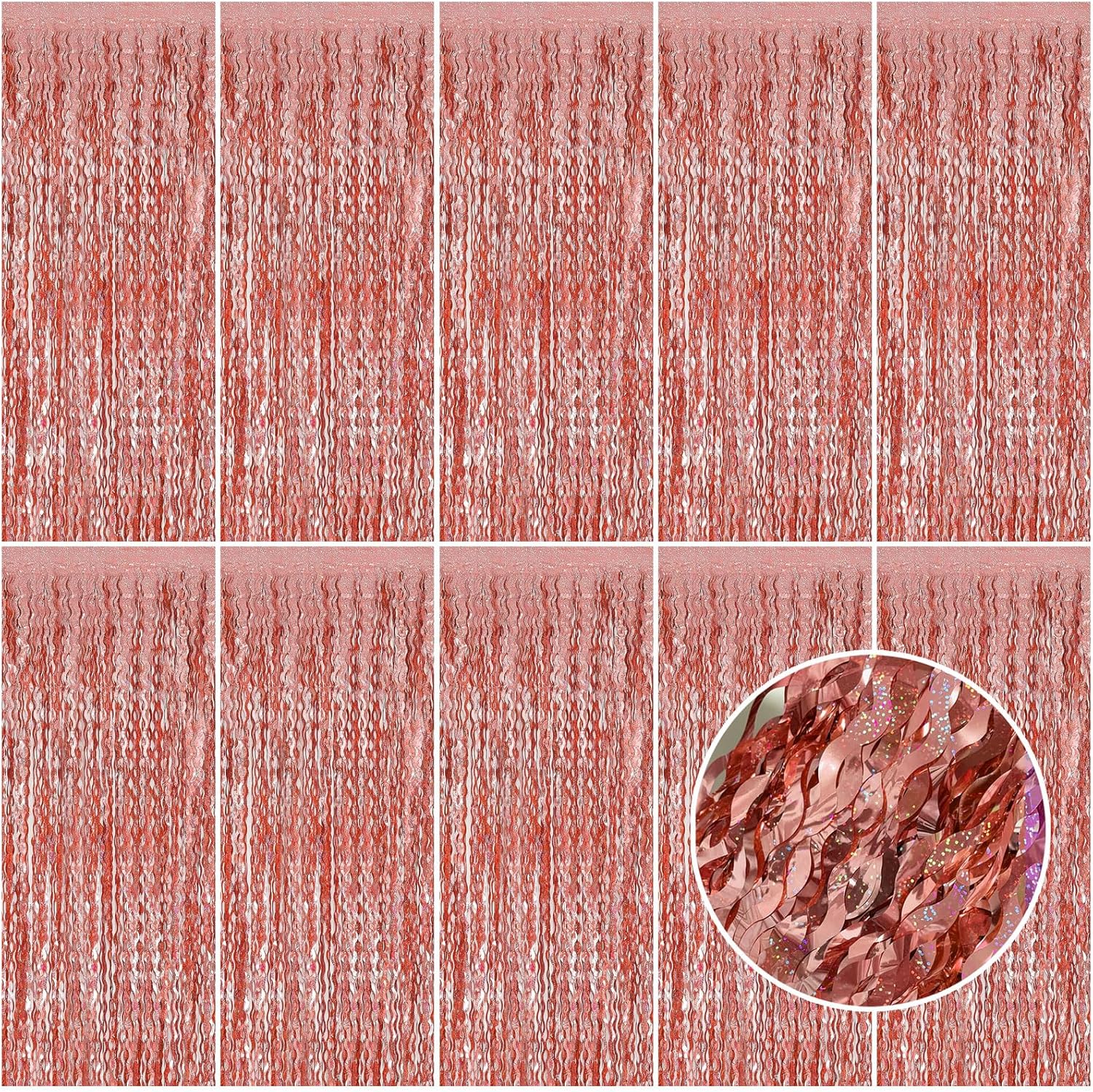 • Rose Gold Birthday Decorations:10 Pack, each curtains size is 3.28 ft x 6.56 ft, enough length foil fringe backdrops are perfect for the door, wall and table,feel free to cut to any length you want.