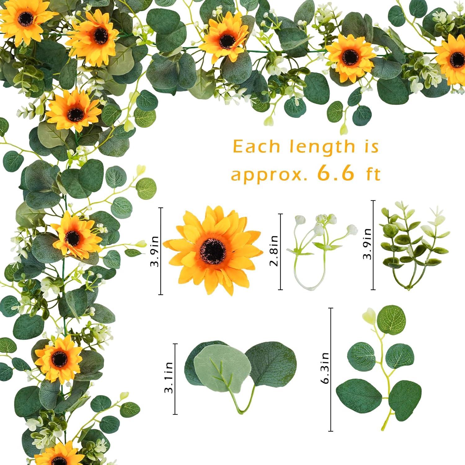• Dimensions: Floral garland is about 1.8m/6.6ft Long, Flowers 3.9cm/3.3inch in diameter, Each garland holds about 69 leaves, 8 sunflowers