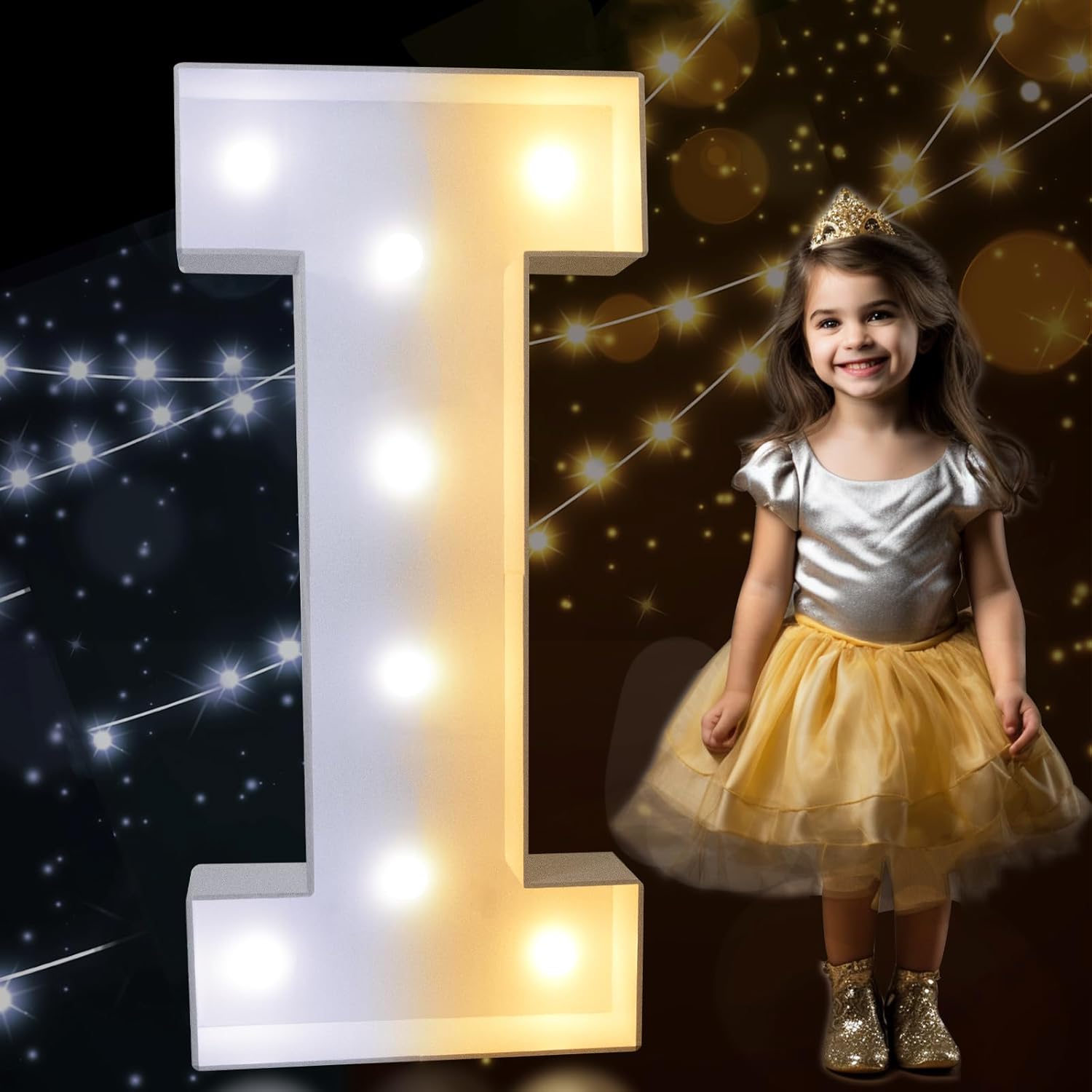 Pooqla 3FT Marquee Light Up Letters, Cool White and Warm White LED Big Mosaic Marquee Letters 3 Feet, Giant Letter Sign for Balloons Birthday Anniversary Wedding Party Decoration, Letter I