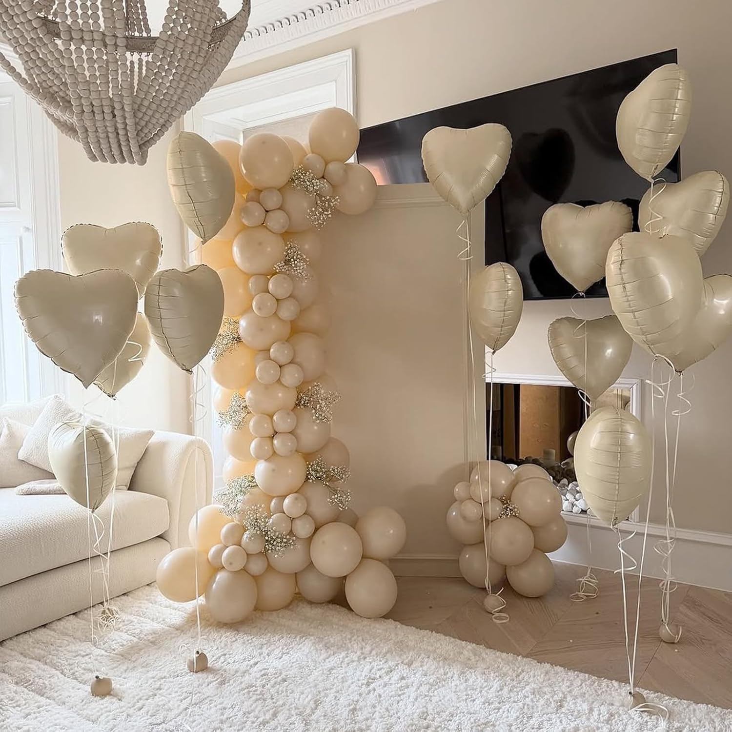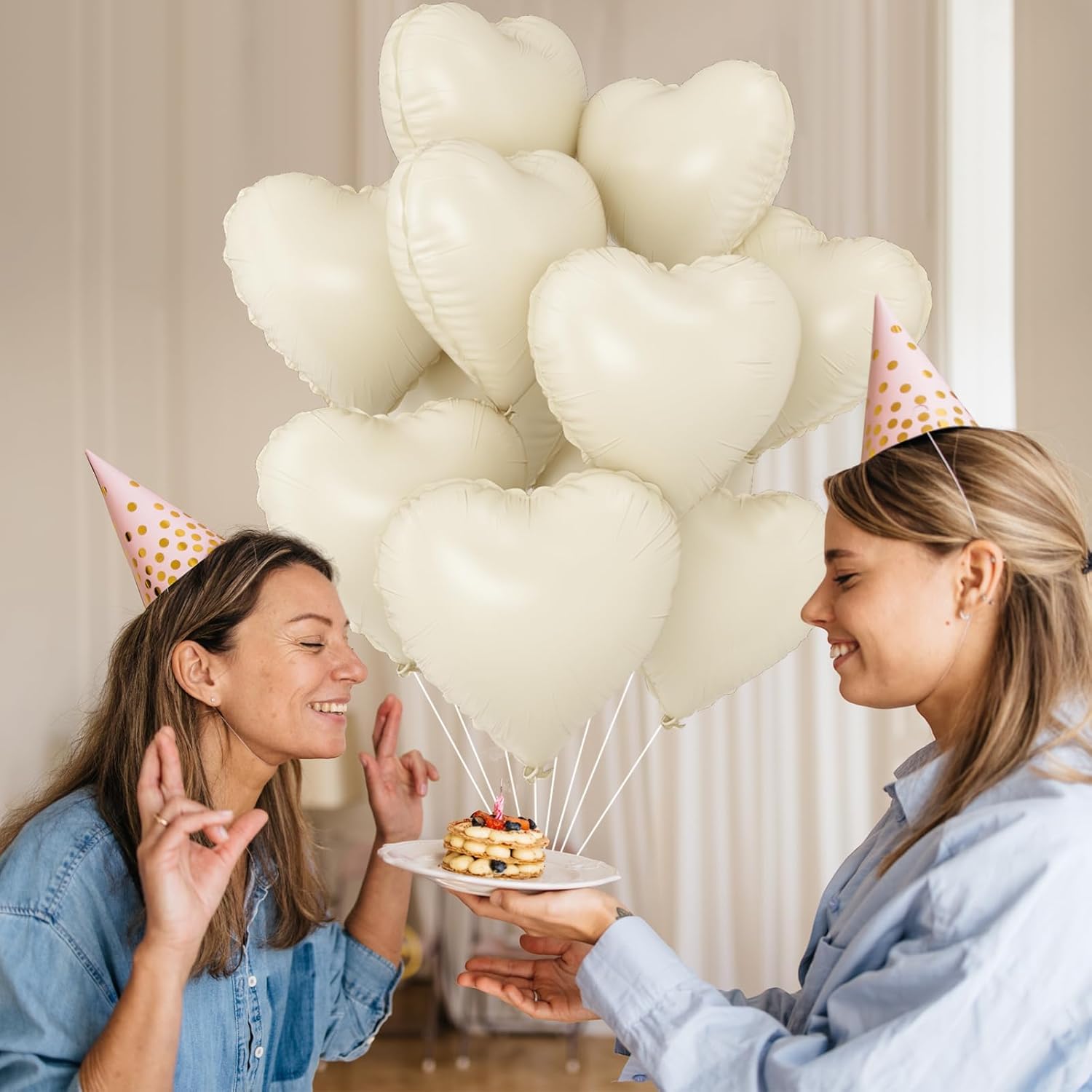White Heart Balloons,10Pcs Cream White Foil Heart Shaped Balloons,18Inch Beige Helium Polyester Film Balloon for Valentines,Engagement,Birthday,Baby Shower,Wedding Party Decorations