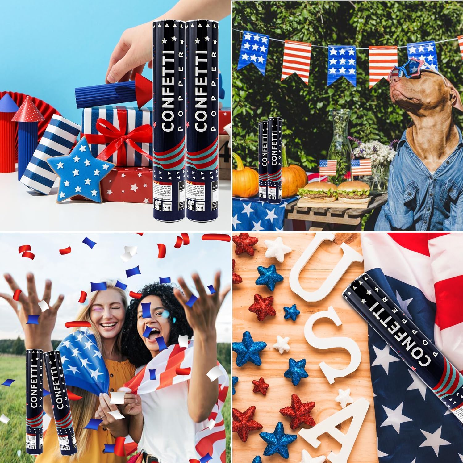 • 【Easy Use 12 Pack 4th of July Patriotic Confetti Poppers】Simply twist the bottom to release a thrilling burst of confetti, creating a festive atmosphere instantly.Our 4th of July Patriotic confetti poppers are safe, non-toxic, and fun to pop.
