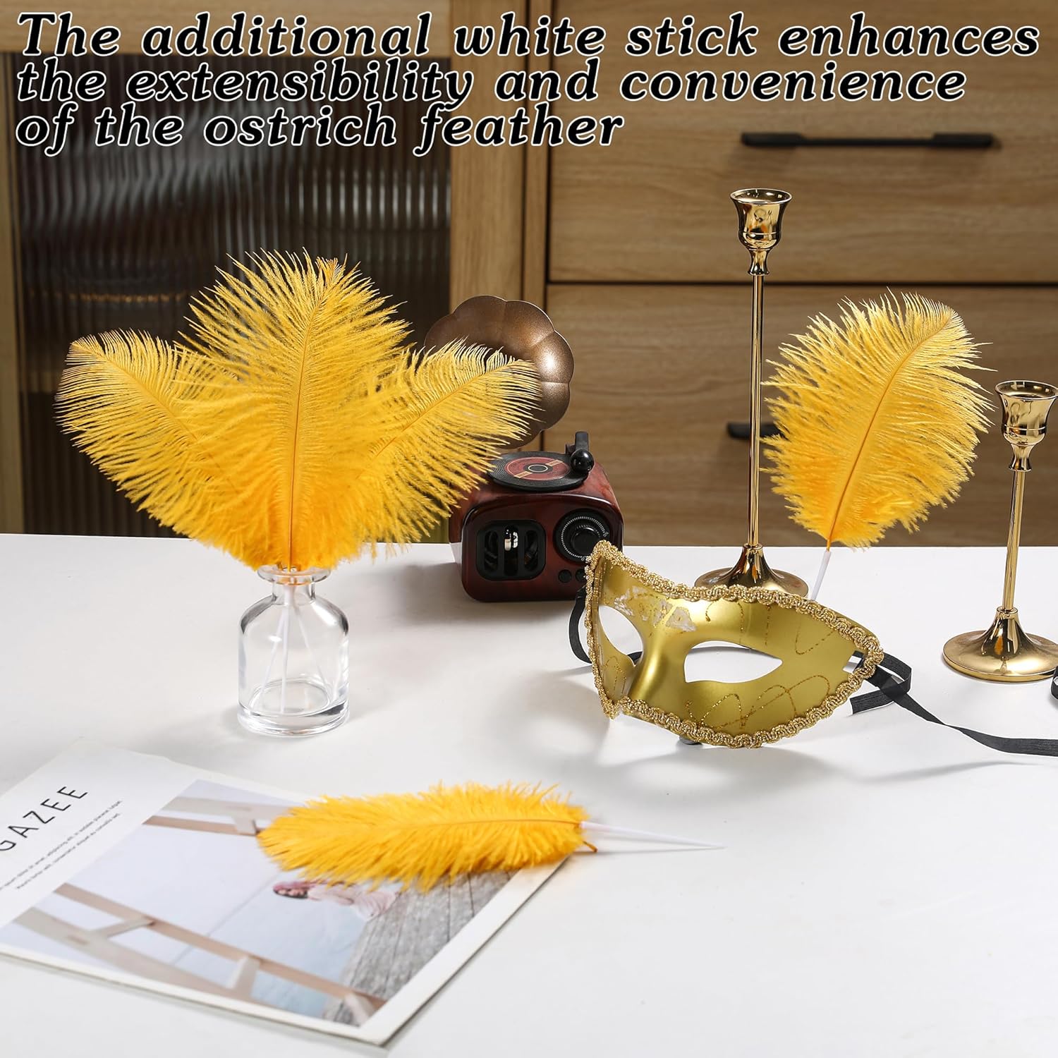 • Creative Ostrich Feathers Set: 30 pcs gold ostrich feathers bulk 6-8 inches, 30 pcs small white sticks 3 inches long. Ostrich feathers kit total length can be up to 9-11 inches