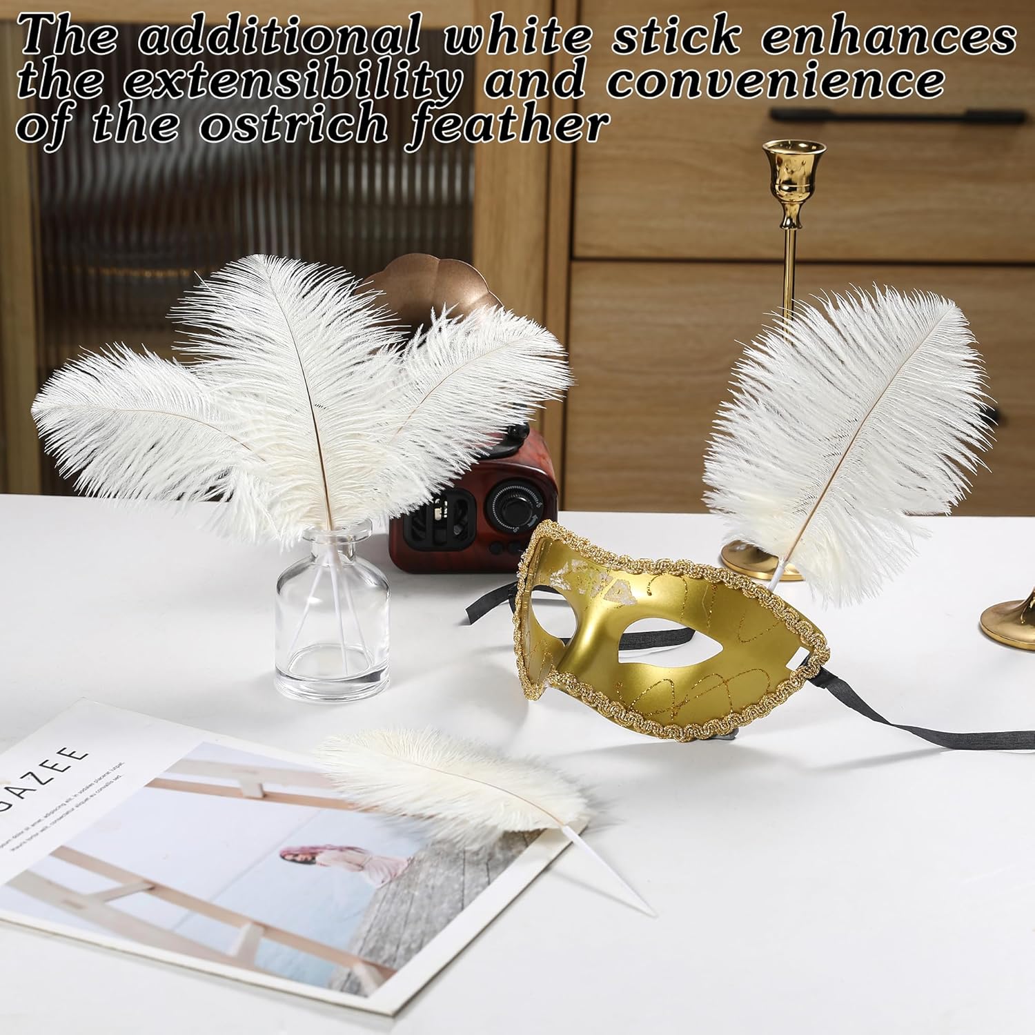 • Easy to Assemble: The craft ostrich feathers can be inserted directly into the white sticks without the need for tape to assist in fixing them, convenient and quick, get a better presentation with the same length of craft ostrich feathers