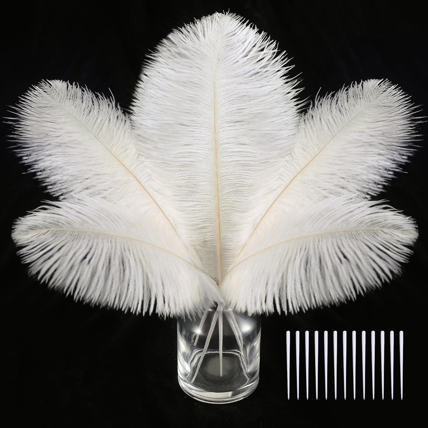 • Creative Ostrich Feathers Set: 30 pcs off white ostrich feathers bulk 6-8 inches, 30 pcs small white sticks 3 inches long. Ostrich feathers kit total length can be up to 9-11 inches