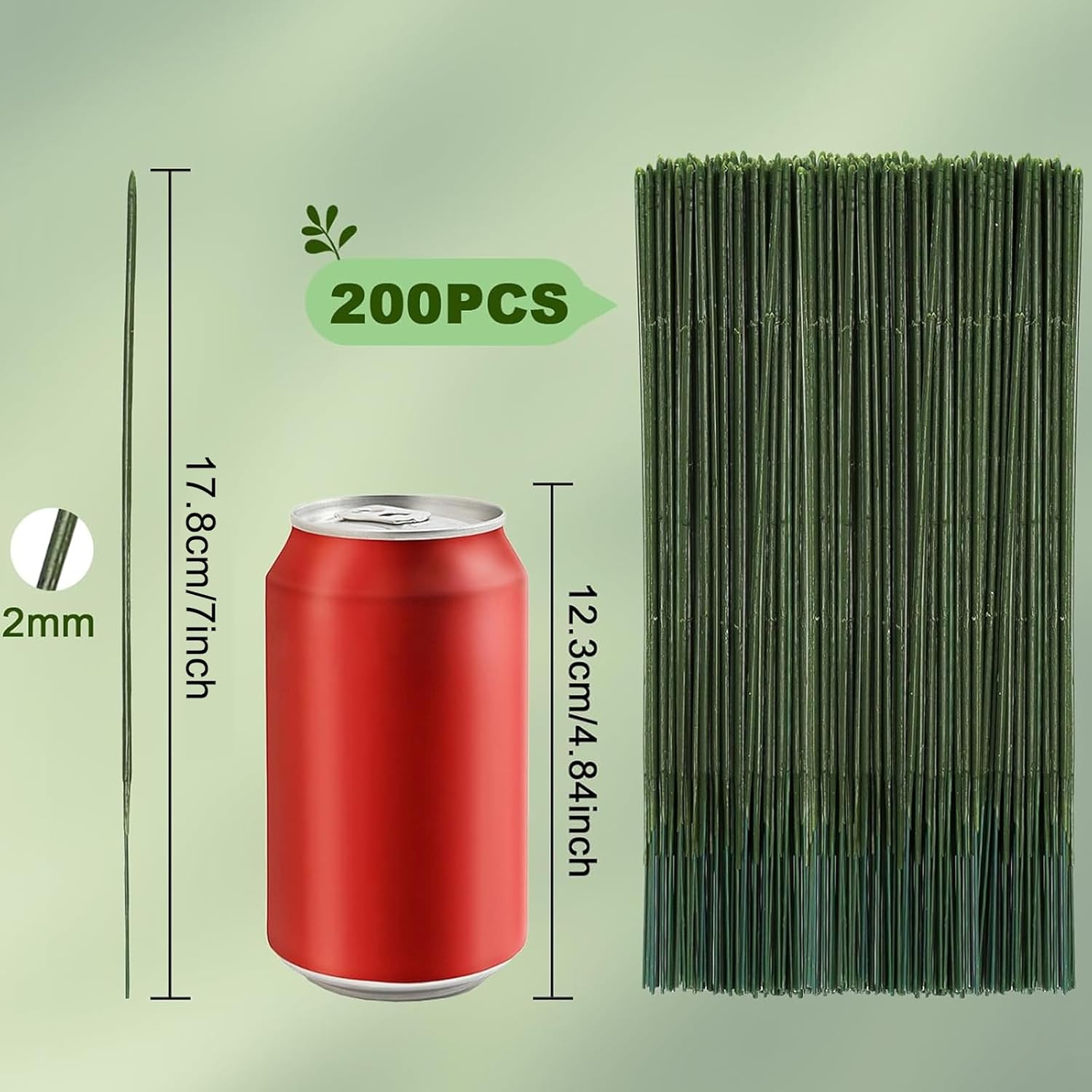 • Size: This length of a single floral stem wire is 17.8 cm/7 inch and the diameter is 2 mm, providing you with sufficient length and strong support, suitable for all kinds of flower production