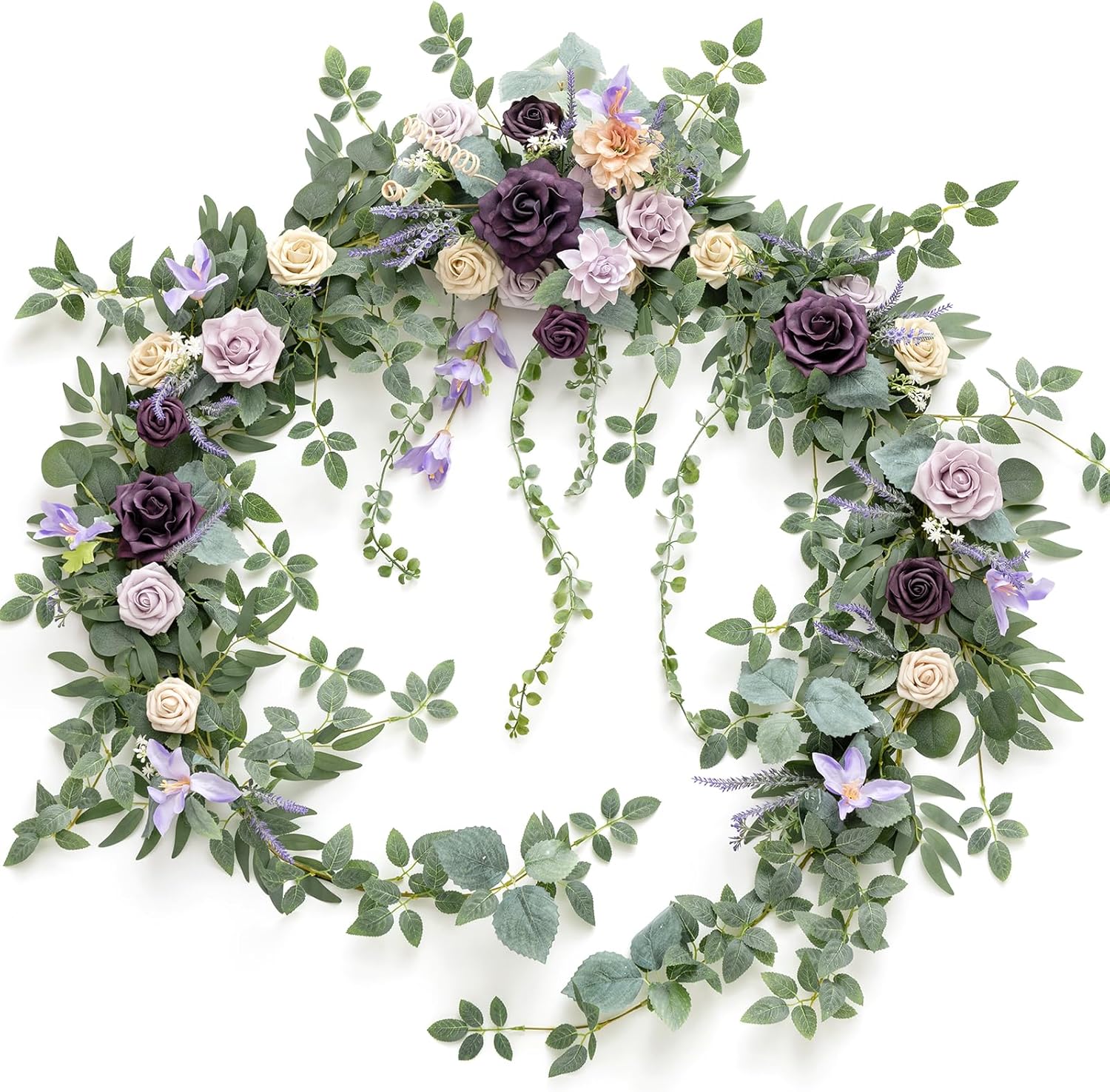 • 9FT Silk Eucalyptus and Willow Flower Garland : The realistic and natural flowers perfectly blend with eucalyptus leaves, help to create your romantic spring/summer lilac theme wedding.