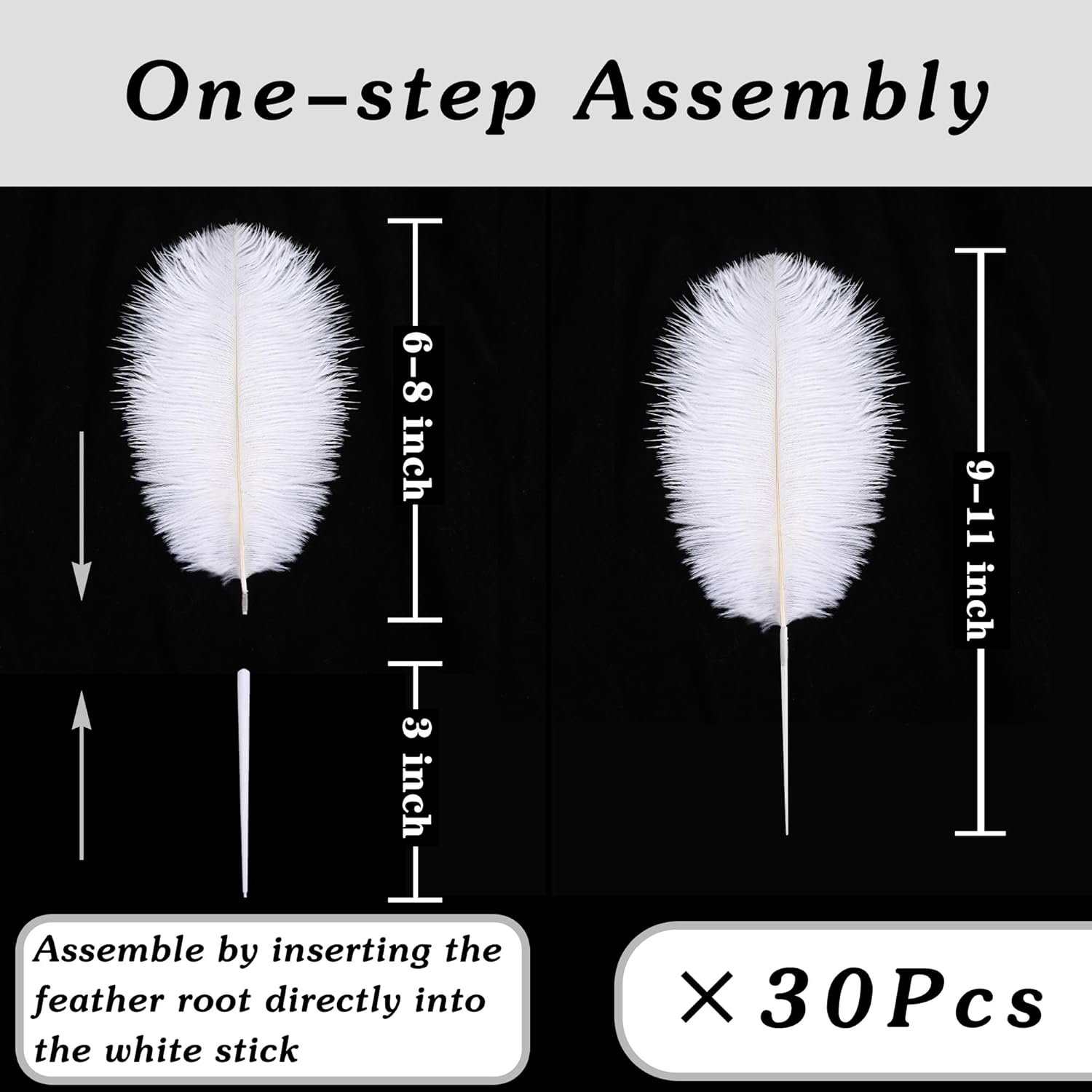 • Easy to Assemble: The craft ostrich feathers can be inserted directly into the white sticks without the need for tape to assist in fixing them, convenient and quick, get a better presentation with the same length of craft ostrich feathers