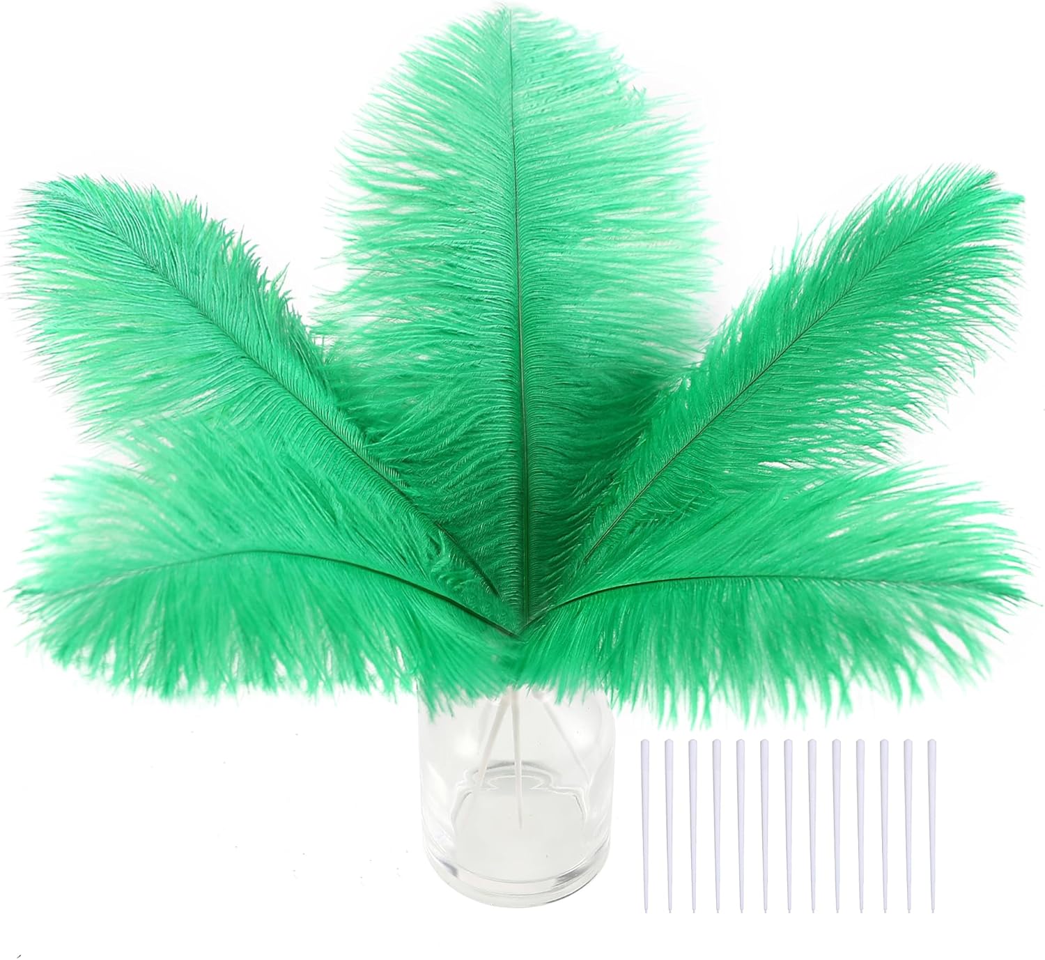 • Creative Ostrich Feathers Set: 30 pcs green ostrich feathers bulk 6-8 inches, 30 pcs small white sticks 3 inches long. Ostrich feathers kit total length can be up to 9-11 inches
