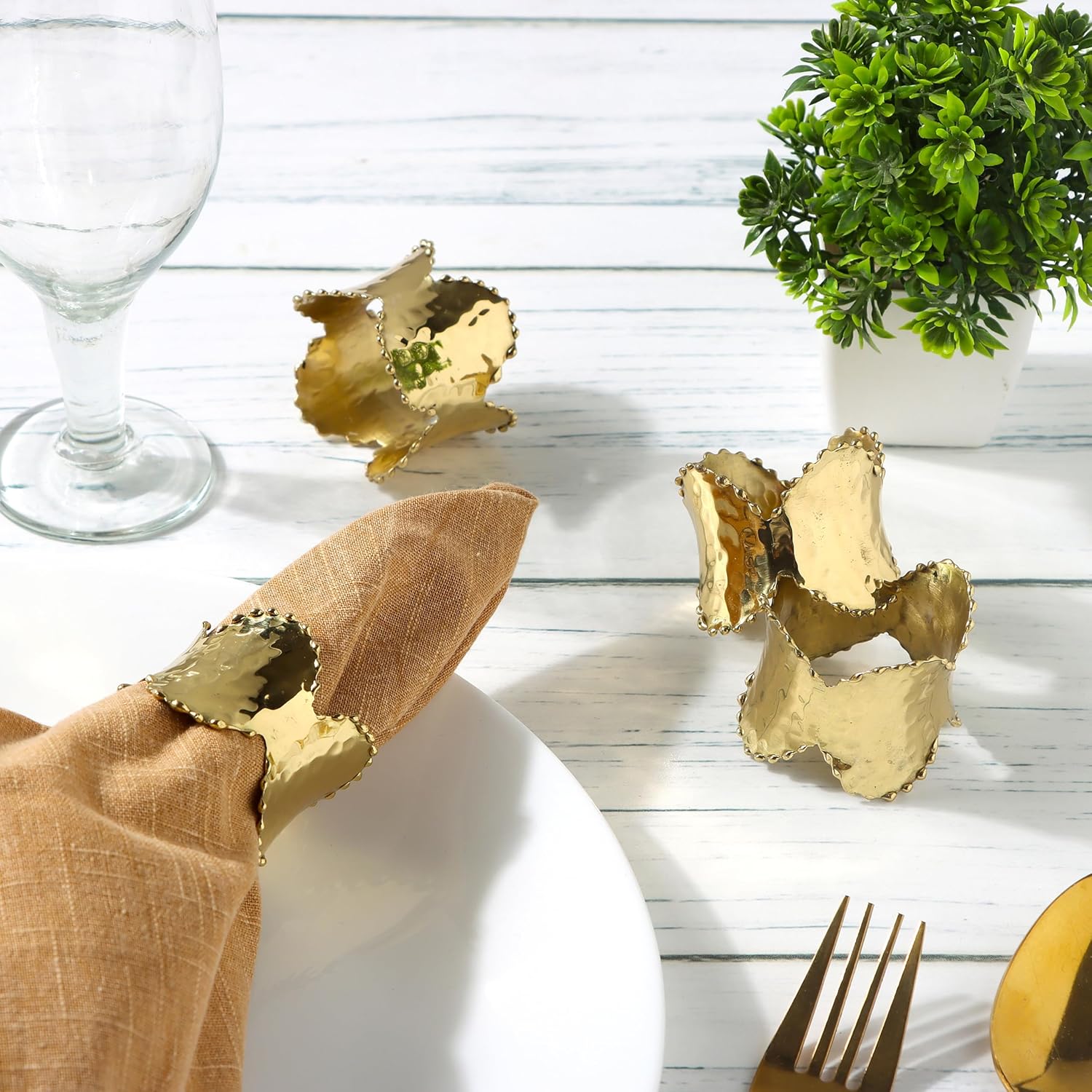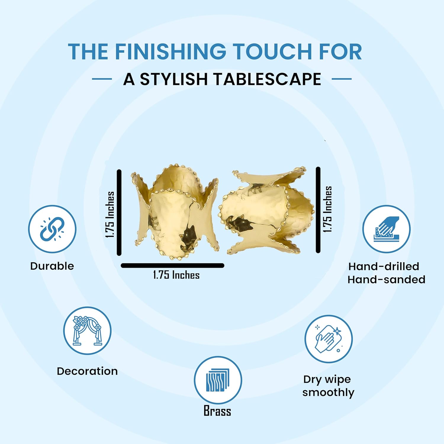 • Lightweight Construction: Despite their sturdy brass construction, these napkin rings are lightweight, making them easy to handle and use.