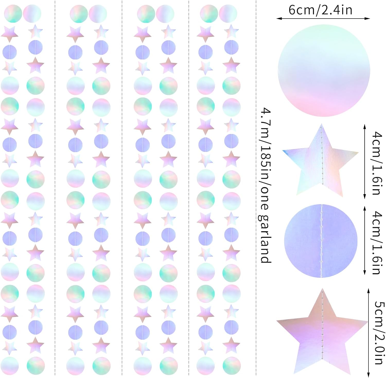 Iridescent Disco-Holographic Birthday Party-Decorations Garland - 52Ft Star Neon Wedding Hanging Paper Streamers Banner,Christmas Bachelorette Baby Bridal Shower Engagement Decor Ouruola
