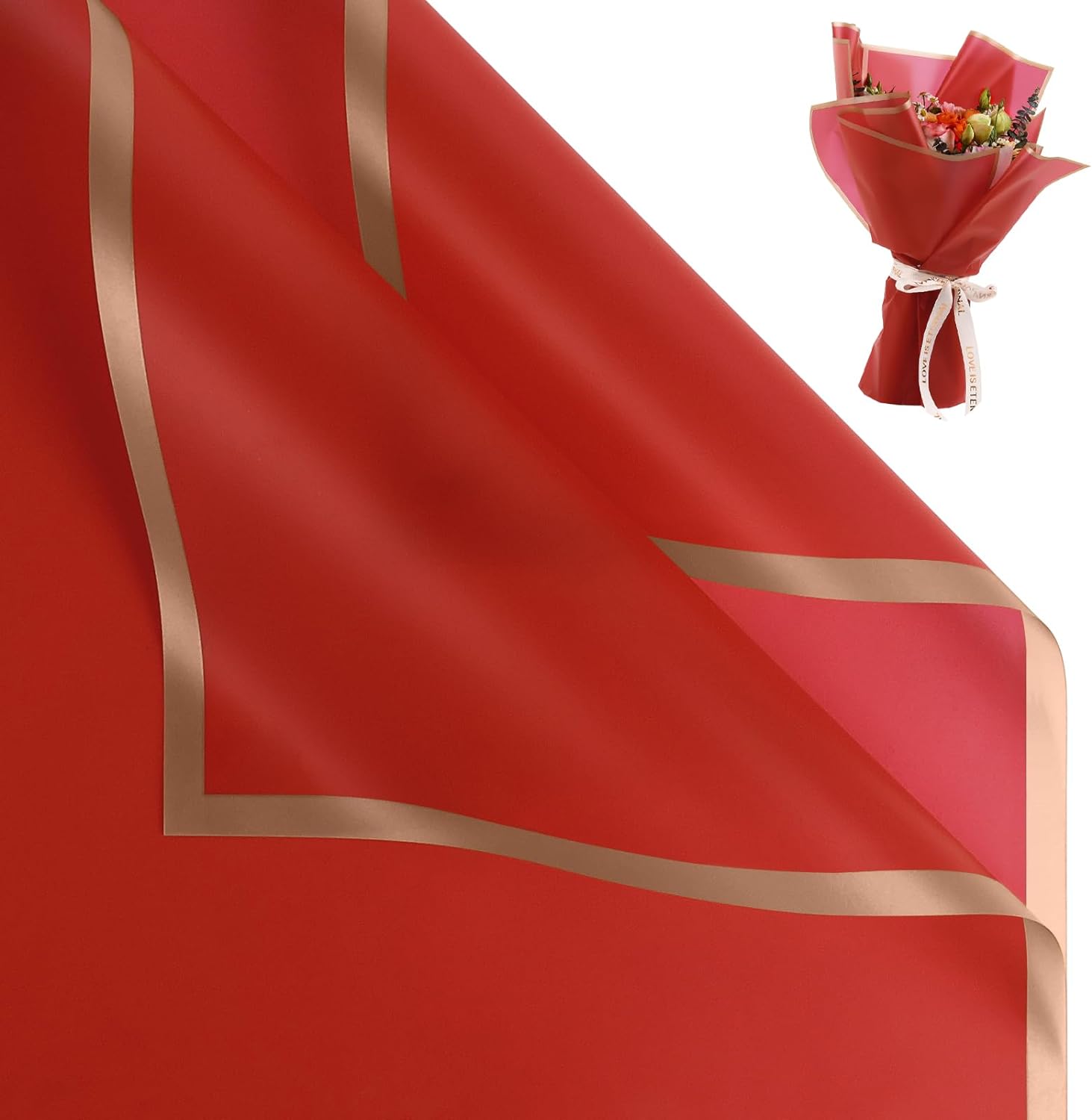 • 【Elegant Design】The florist paper is designed with gold edges, features glossy and vibrant colors, smooth and comfortable to touch. The lightweight and sturdy nature of the paper ensures a professional and exquisite appearance,Is the perfect choice for bouquet packaging and gift box packaging