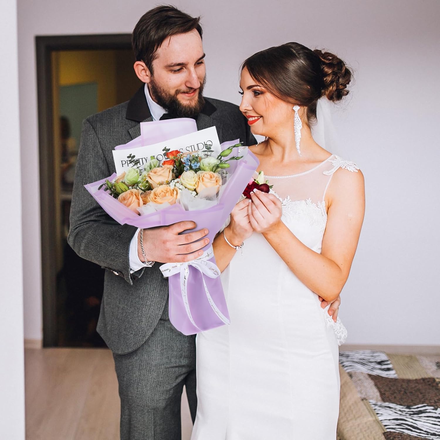 NESCCI 20 Sheet Flower Wrapping Paper - Waterproof Floral Bouquet Wrapping Paper, Florist Supplies Packaging Paper for Wedding Birthday Gift DIY (Translucent Lilac Purple)