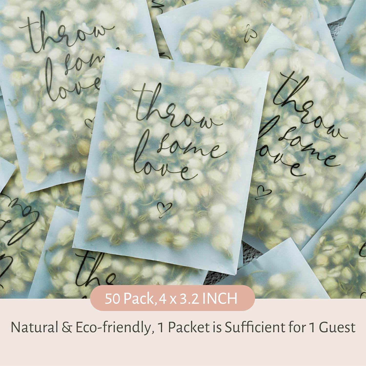 • "THROW SOME LOVE" - HEARTFELT MESSAGE, CHARMING DESIGN: Elevate your wedding exit with our exclusive “Throw Some Love" message confetti packets. Each toss becomes a heartfelt expression, spreading love and joy to the newlyweds and guests.