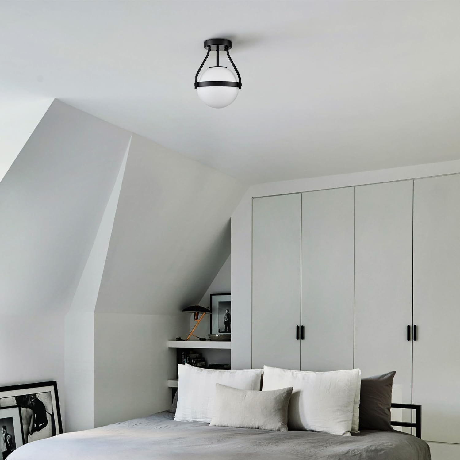 HOLKIRT Modern Globe Semi Flush Mount Ceiling Light,Black Ceiling Light Fixture with Opal Glass 7Inch/18CM,Mid Century Kitchen Light Fixtures Hallway Light Fixtures Ceiling for Bedroom Kitchen