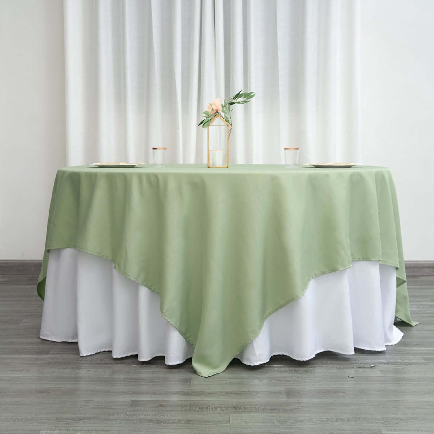 • Quantity: 1 Tablecloth Material: 100% Polyester Color: Sage Green Size: 90" x 90" Square Thickness: 200 GSM 1 piece, seamless design Stain & Wrinkle Resistant, Machine Washable Hemmed edges for an exquisite look.