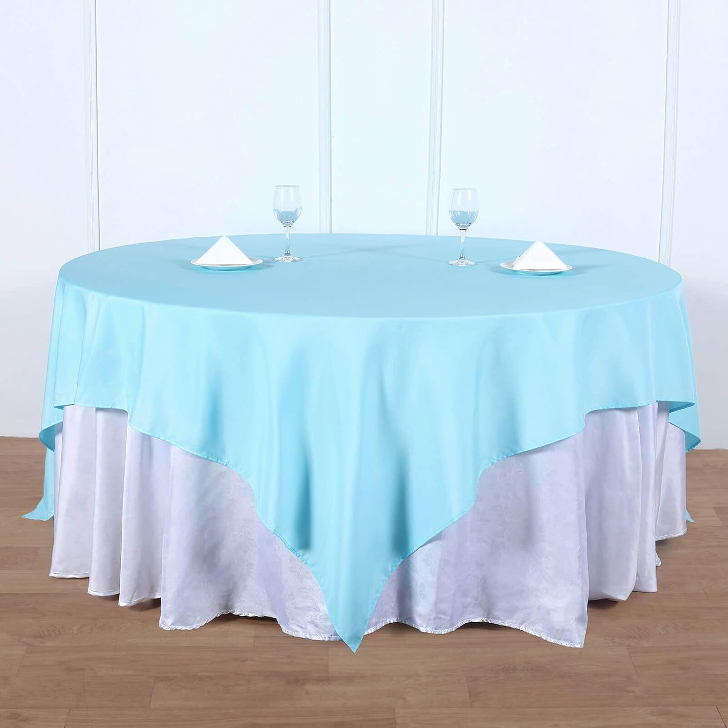 Efavormart 90" Square Polyester Table Overlay for Wedding Kitchen Dining Events - Blue