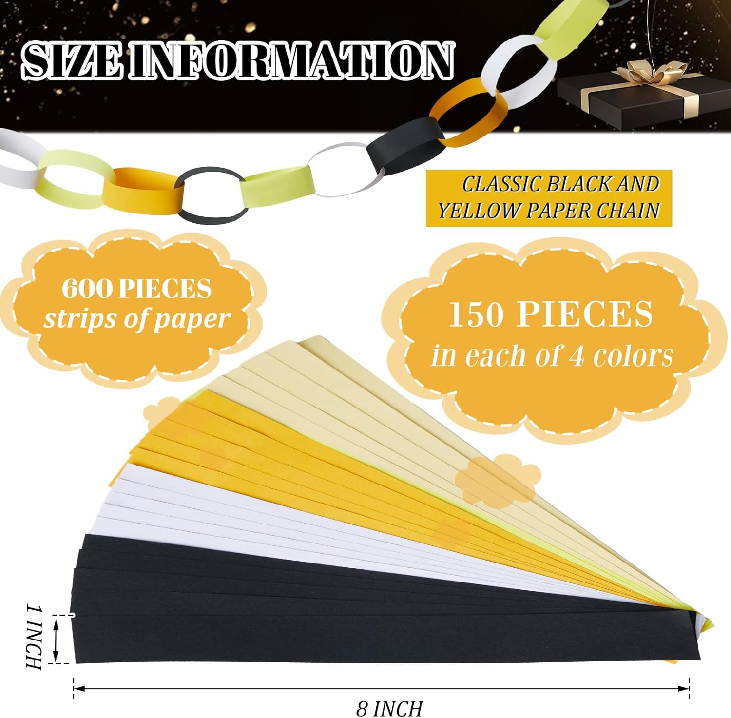 Lincia 600 Sheet Halloween Paper Chain Garland, Construction DIY Crafts Chain Strip for Fall Thanksgiving Party Decor, 1x8 Inch with Double Sided Tape (Black Gold)
