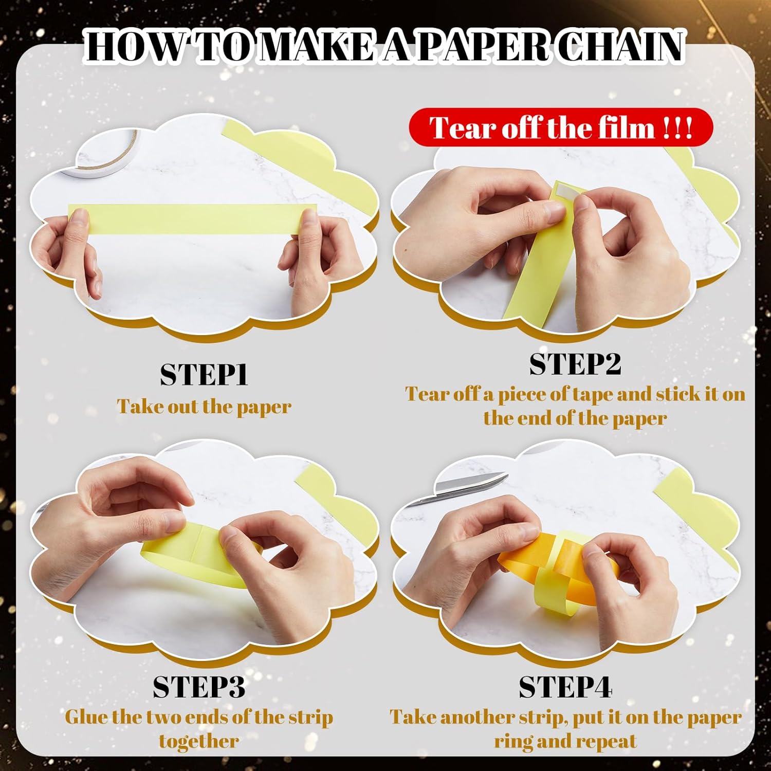• Worry Less Crafting Experience: crafting has never been easier with our DIY paper chain strips that equipped with sticky tape; You just need to stick the 2 ends of the paper together with the tape, match the color as you like, ring by ring, and you will get an exquisite handicraft, without complex or dangerous procedures; You can quickly turn your ideas into reality without the stress of sourcing for additional crafting materials