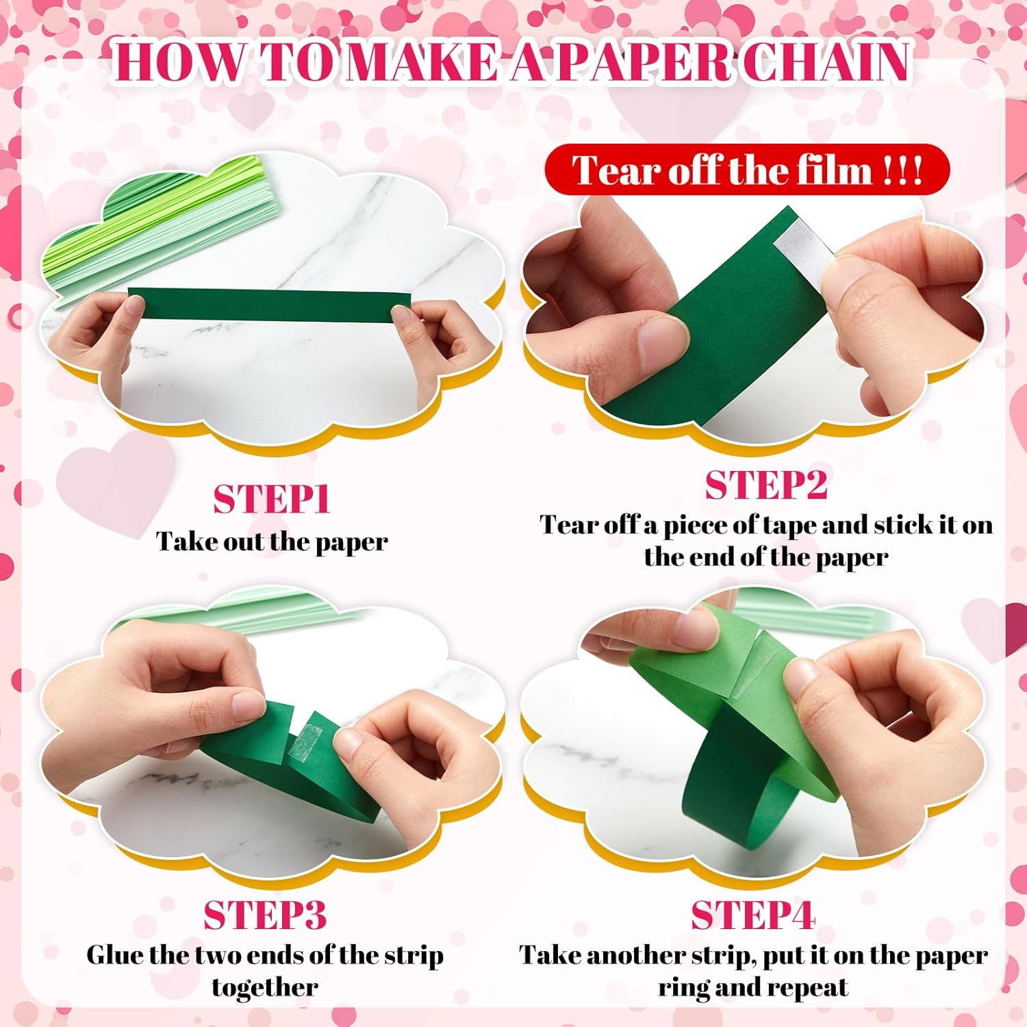 • Worry Less Crafting Experience: crafting has never been easier with our DIY paper chain strips that equipped with sticky tape; You just need to stick the 2 ends of the paper together with the tape, match the color as you like, ring by ring, and you will get an exquisite handicraft, without complex or dangerous procedures; You can quickly turn your ideas into reality without the stress of sourcing for additional crafting materials