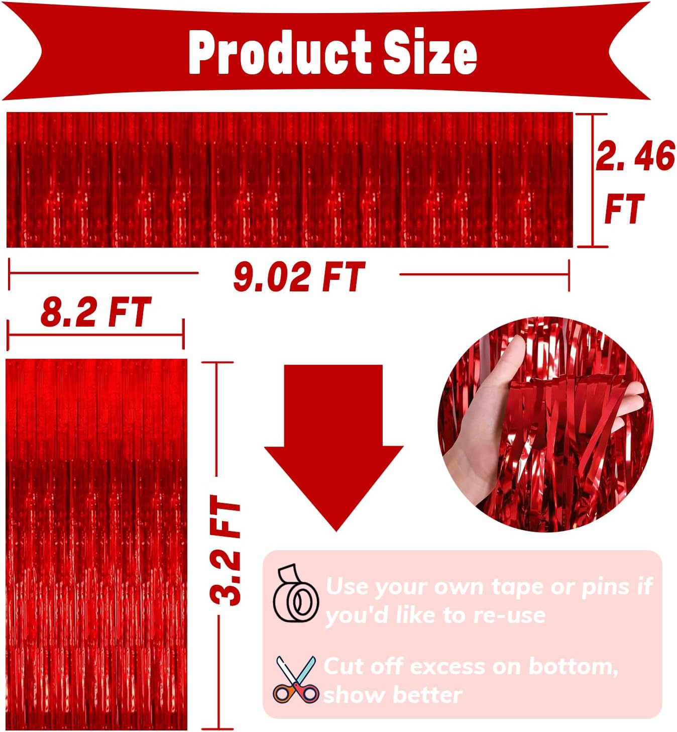 4P Metallic Foil Fringe Tinsel Table Skirts for Rectangle Tables Backdrop Banner Tinsel Streamer Garland Curtains for Parade Floats Wedding Graduation Anniversary Birthday Parties Decoration (Red)