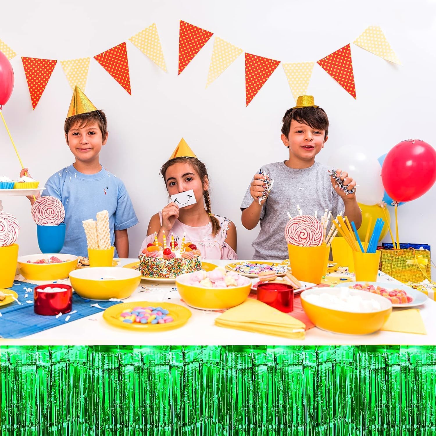 4P Metallic Foil Fringe Tinsel Table Skirts for Rectangle Tables Backdrop Banner Tinsel Streamer Garland Curtains for Parade Floats Wedding Graduation Anniversary Birthday Parties Decoration (Green)