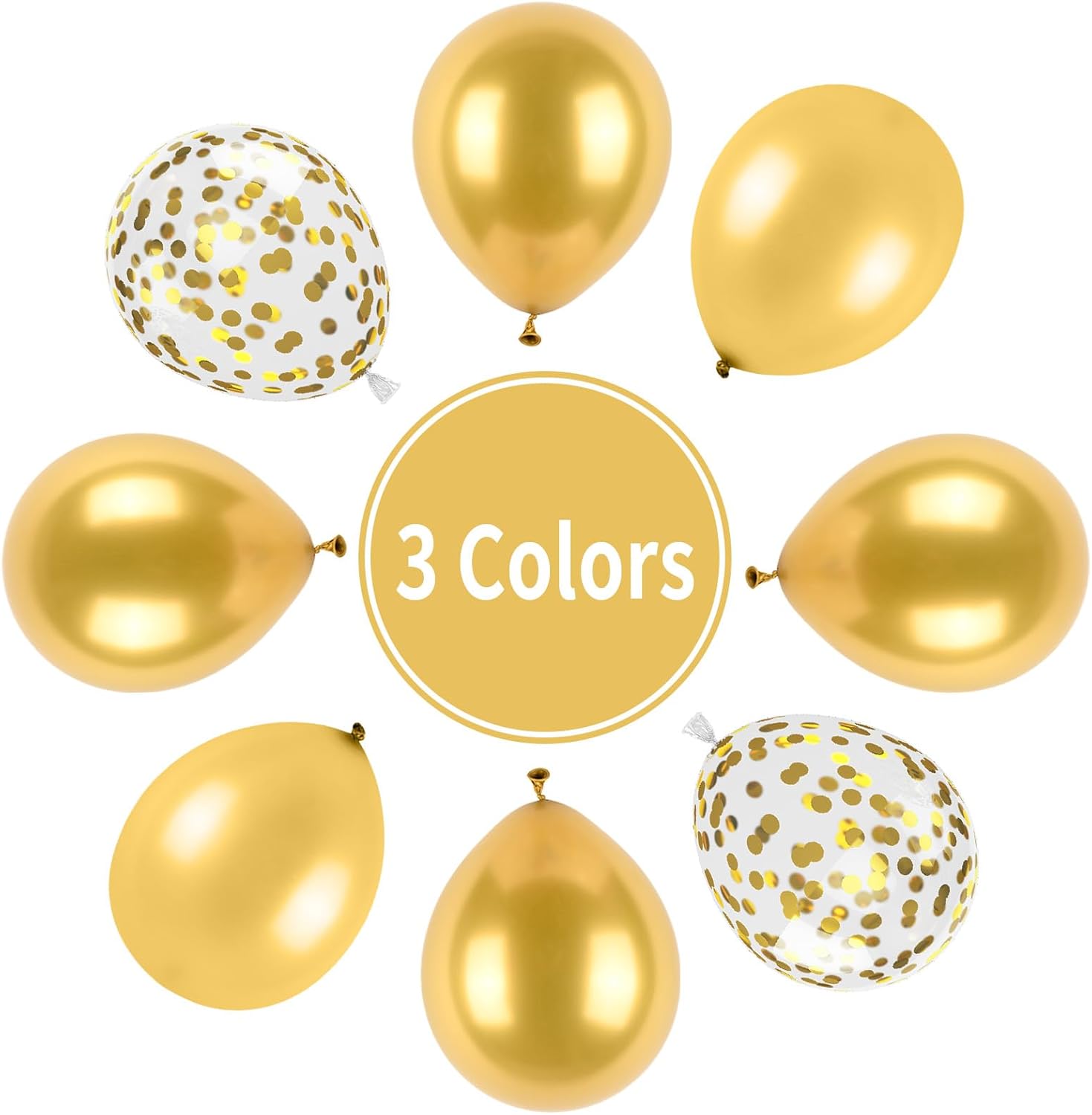 Gold Balloons, Metallic Gold Party Balloons Pearl Gold Latex Balloons Chrome Gold Confetti Balloons for Kids Adults Birthday Wedding Baby Shower Graduation Anniversary Festival Decoration