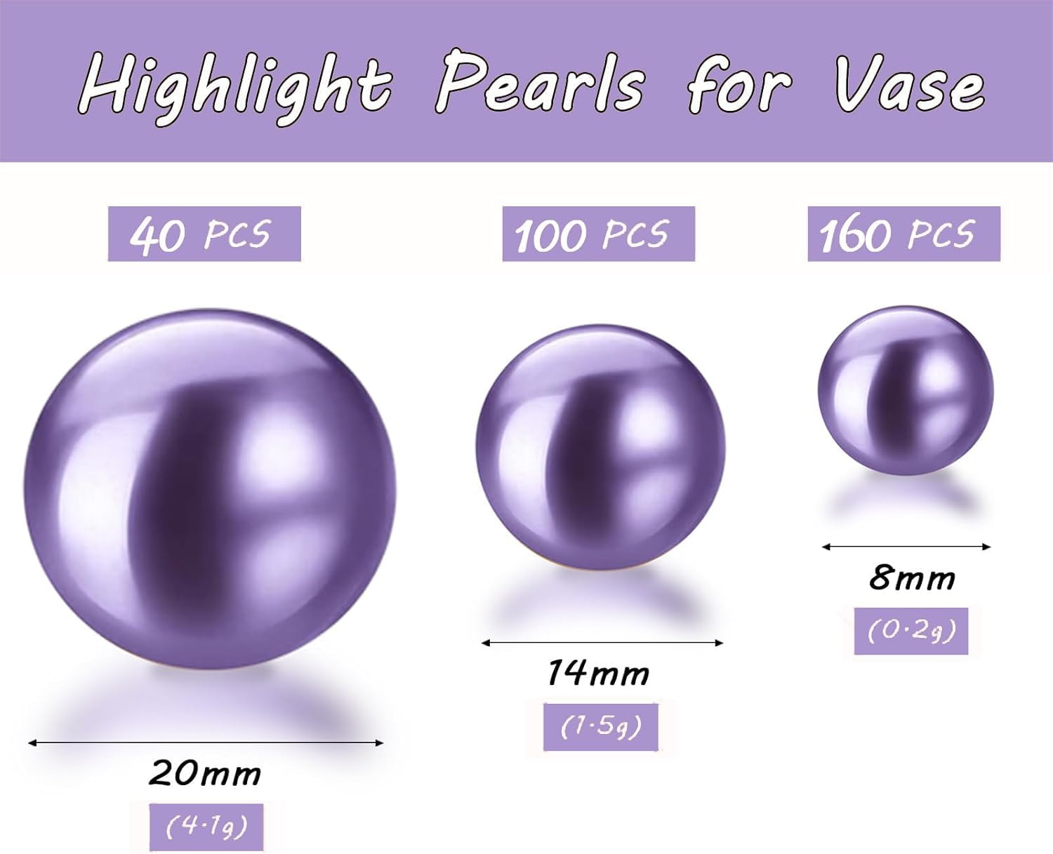 300Pcs Light Purple Polished No Hole Faux Pearl Beads for Vase Filling Decorations, Plastic Pearls Vase Fillers, Table Scatters, Wedding Centerpiece, Home Decor, 8/14/20 mm