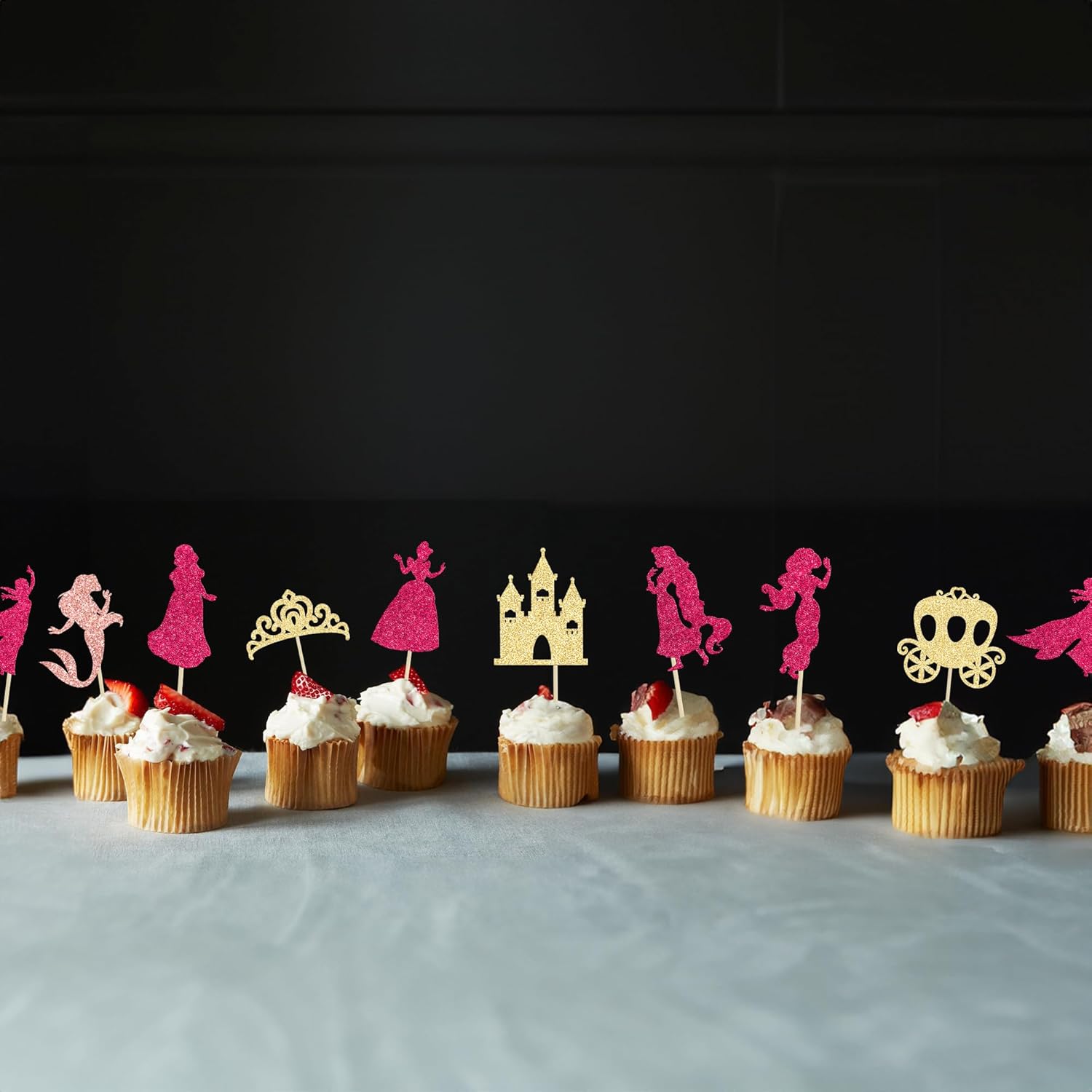 Gyufise 36Pcs Princess Cupcake Toppers Glitter Mermaid Girl Castle High Heel Crown Cupcake Picks Princess Theme Baby Shower Girls Birthday Party Cake Decorations Rose Red