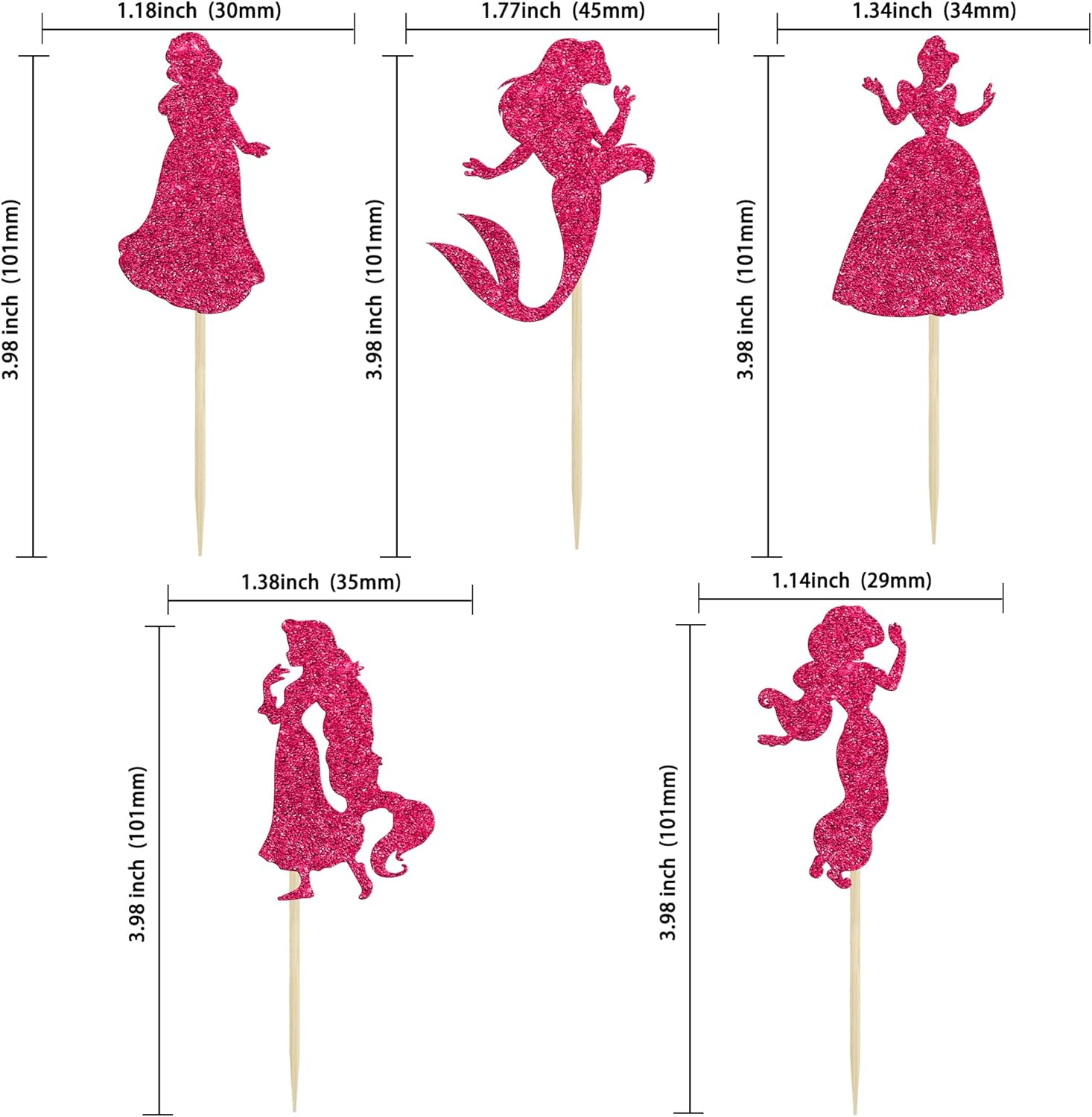 • 👑👑Premium Material: These Colorful Princess Cupcake Toppers are made of high quality 300 gram card stock and food-grade toothpick, very safe to put them on cakes, cupcakes, ice cream, fruits, pie, dessert, cheese or any dish and food appetizer you want to decorate princess party decorations.