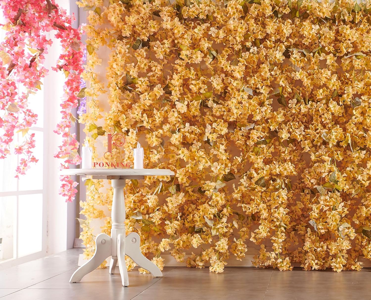 Flower Garland, Artificial Hydrangea Vine Flowers, Hanging Fake Hydrangeas Vine for Room Anniversary Wedding Birthday Christmas Wall Arch Decor, 2 Pcs, Floral Garland, Champagne Flower