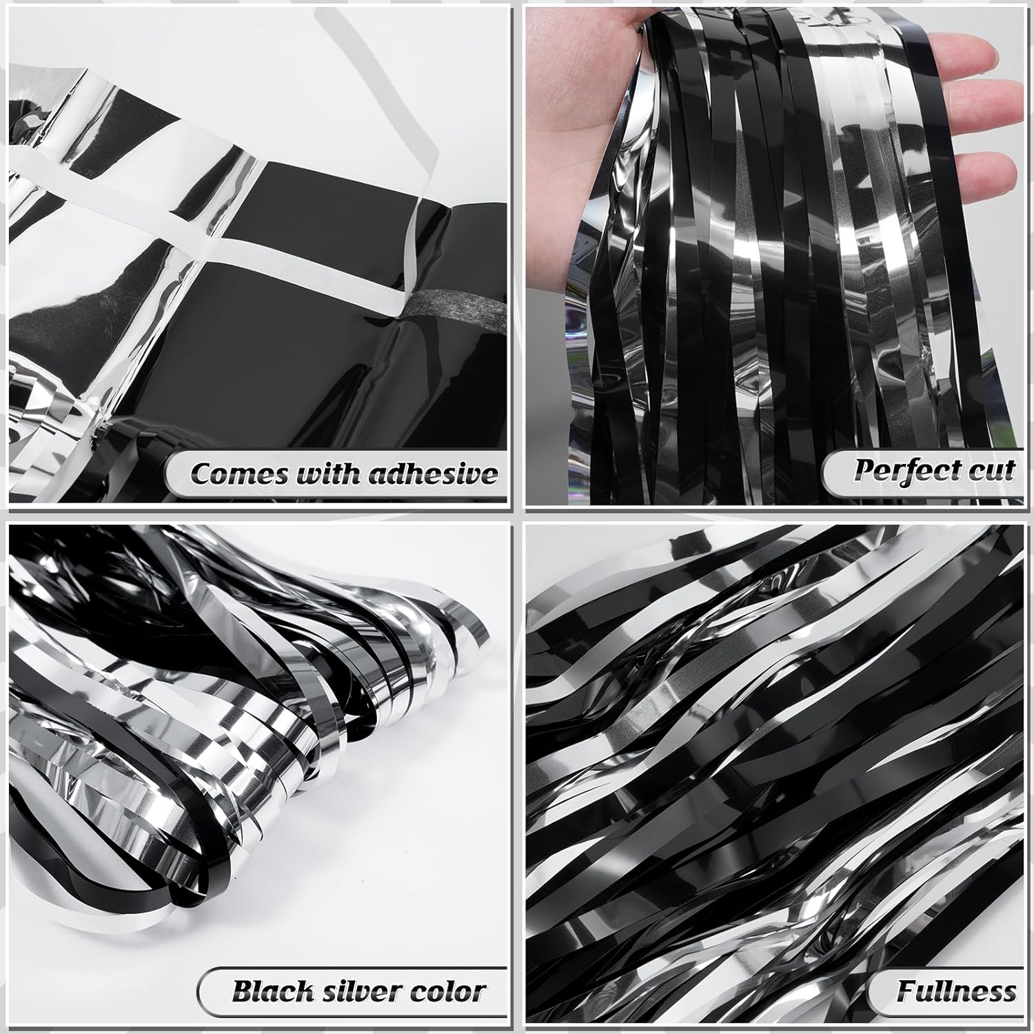 • Durable Quality: Crafted from high-quality plastic metallic foil, our prom metallic curtain decoration is designed to last. With its strong self-adhesive, it is easy to apply and will stay securely in place throughout your celebration, lighting up your party and leaving a lasting impression on your guests.