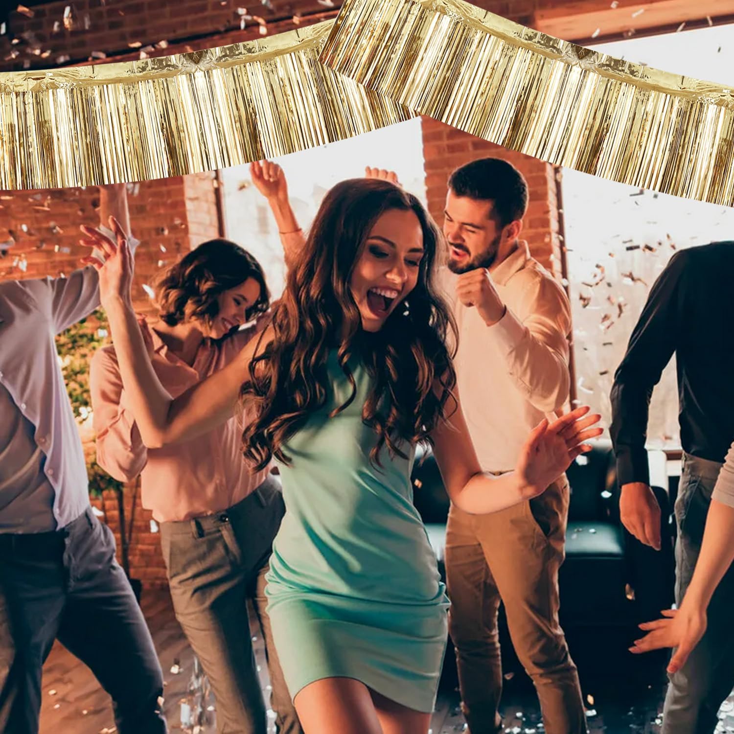 BEISHIDA 3 Packs Metallic Foil Fringe Garland Champagne Wall Hanging Tinsel Fringe Banners for Car Floats Halloween Bridal Shower Wedding Birthday Easter Graduation Holiday Party Decoration(30Ft)