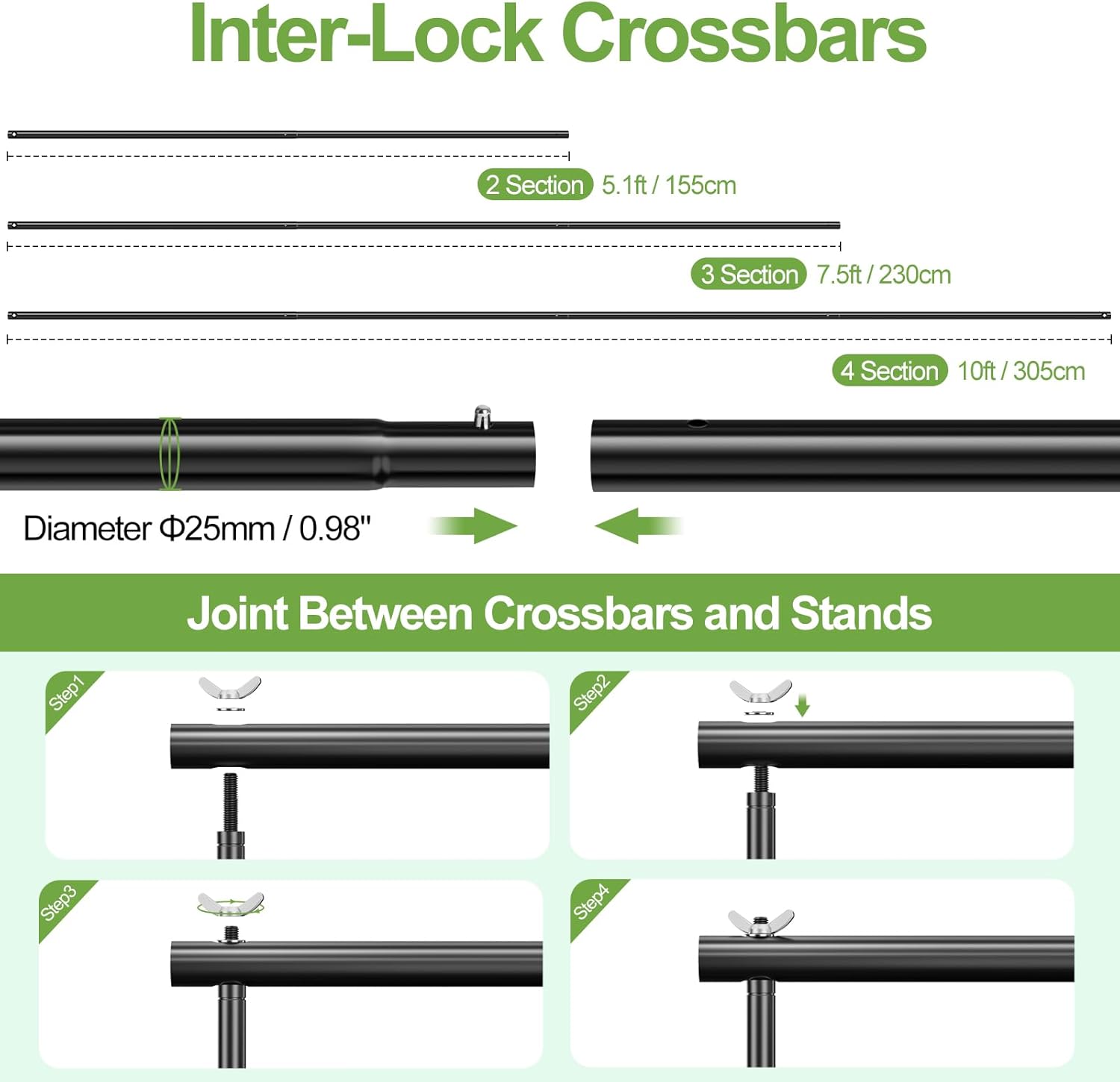 • 【Adjustable Height & Width】Backdrop stand adopts aluminum alloy construction, long-lasting and sturdy. Height and width adjustable with good flexibility, height can be adjusted from 2.9ft-10ft, interlocking crossbars width can be adjusted from 5.1ft to 10ft. Loading capacity up to 30lb. Easy to assemble and disassemble in just a few minutes.