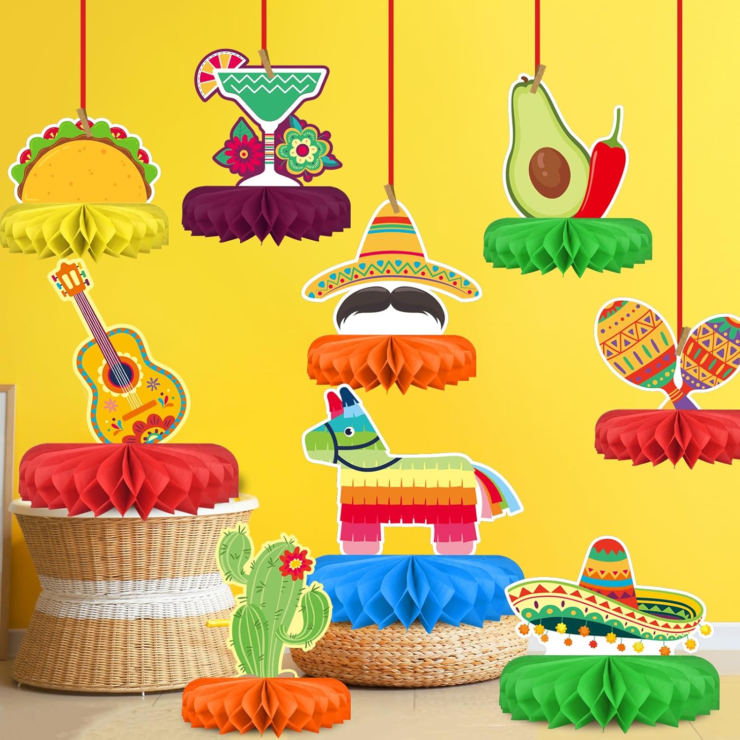 Fiesta Party Decorations - Authentic Mexican Themed Honeycomb Centerpiece for Cinco De Mayo, Taco Parties, Birthdays & Day of the Dead Celebrations