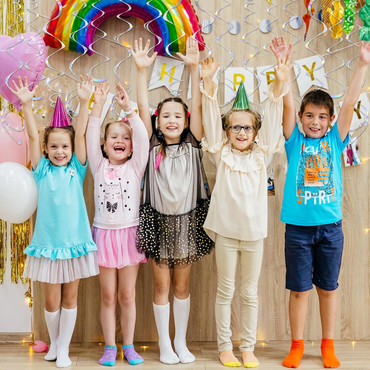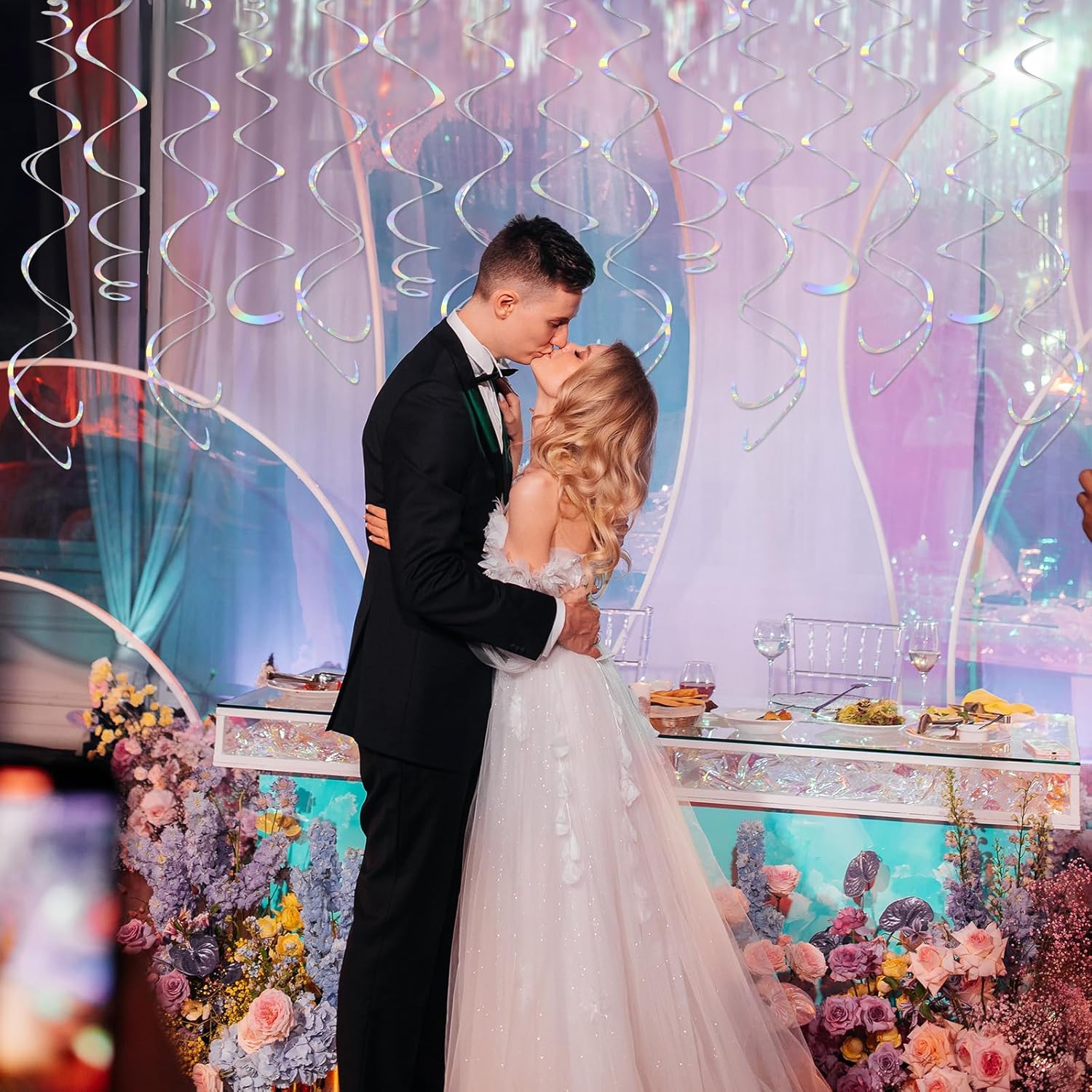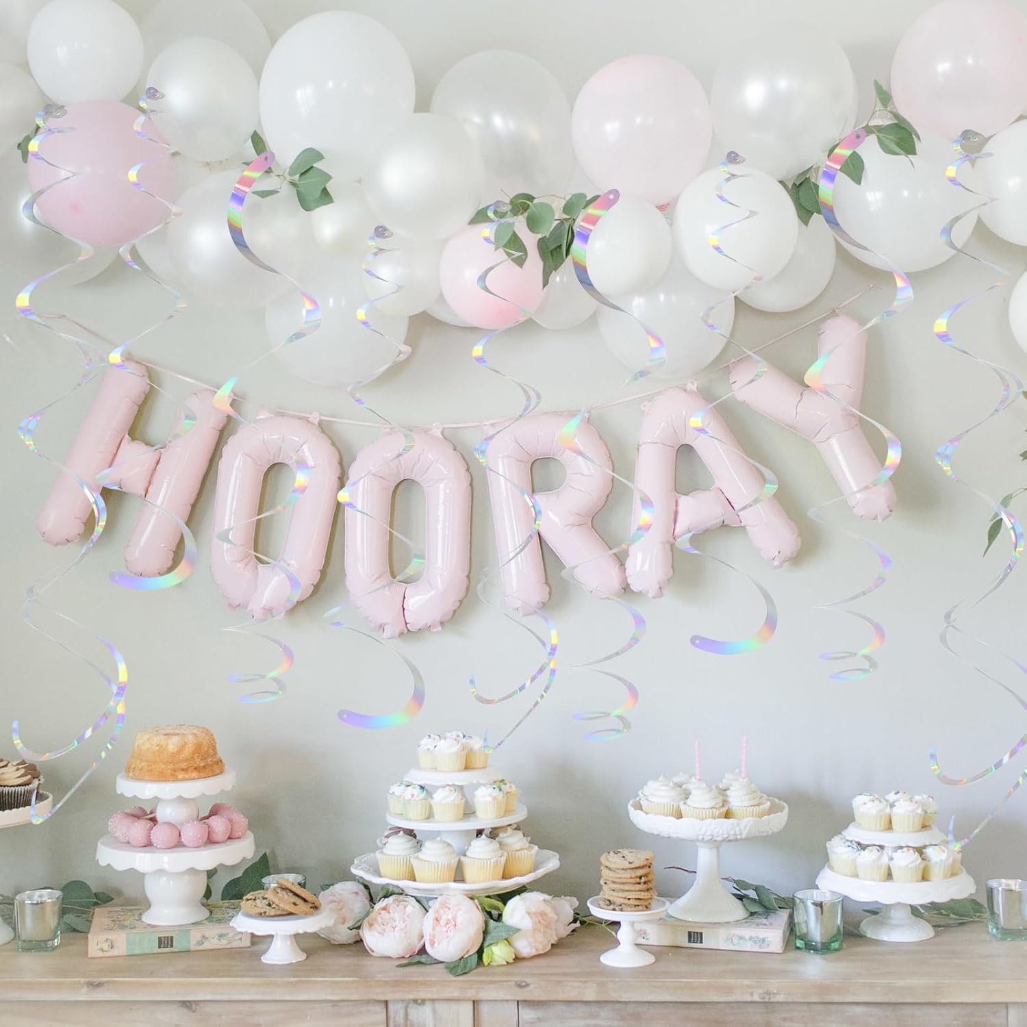 • Assemble Easy: The Iridescent hanging swirls have a small ring on them, just tear the swirl slowly along the edge and hang it on the hook to complete a simple party decoration. Time saving and easy to operate.