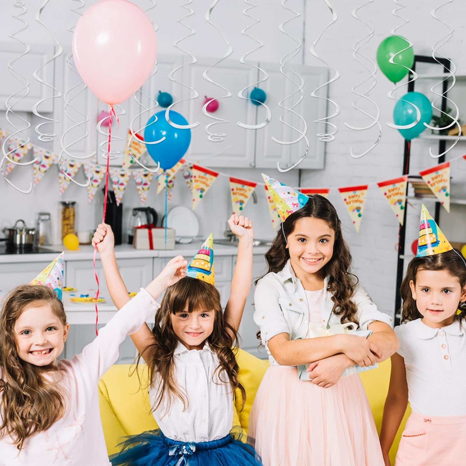 24 PCS Silver Foil Hanging Swirl, Sparkle Ceiling Hanging Decorations, Plastic Streamer Party Decorations, Swirl Decorations with Double-Swirls and Single-Swirls for Birthday, Baby Shower, New Years