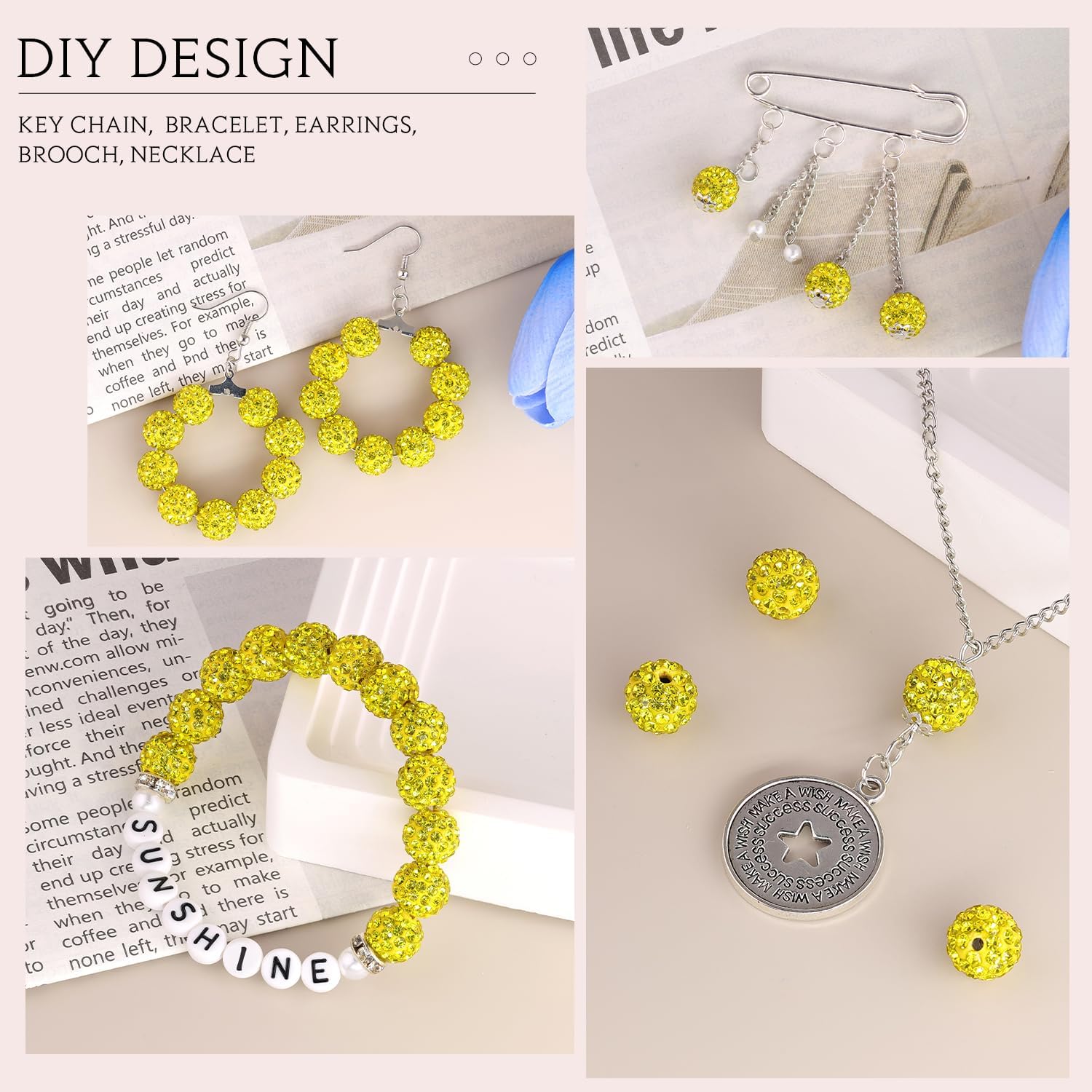 150 pcs 10mm Rhinestone Beads for Jewelry Making, Yellow Shiny Round Shamballa Disco Beads Bulk, Sparkle Crystal Clay Christmas for Bracelet Baseball Necklace Earring Crafting and DIY