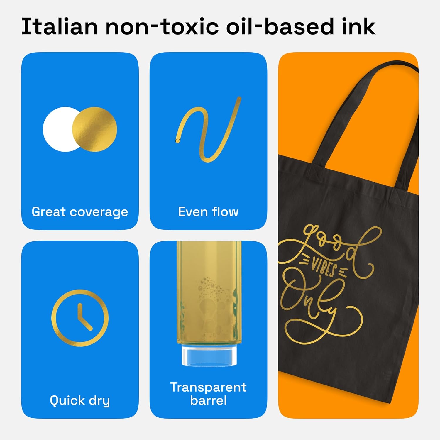 • Non-Toxic: This gold oil paint set conforms to ASTM D-4236 safety standards. Plus, there’s no odor with your oil markers paint pens. Each oil based marker is ready to use with any project and is safe for kids and adults!