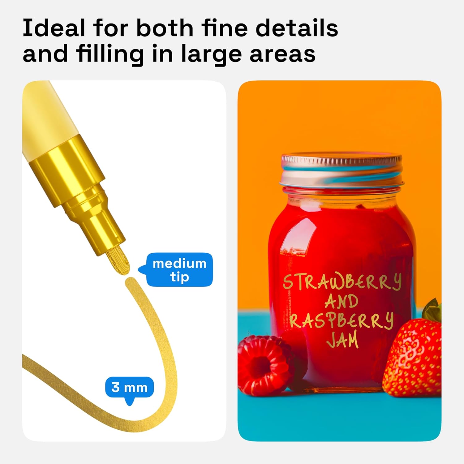 • Medium Tip: Each oil paint pen is made for fine line work. Detail your DIY project with these oil based pens. Each oil based paint marker will add some shine to your art, no matter the occasion – Christmas, birthday, or wedding decorations!