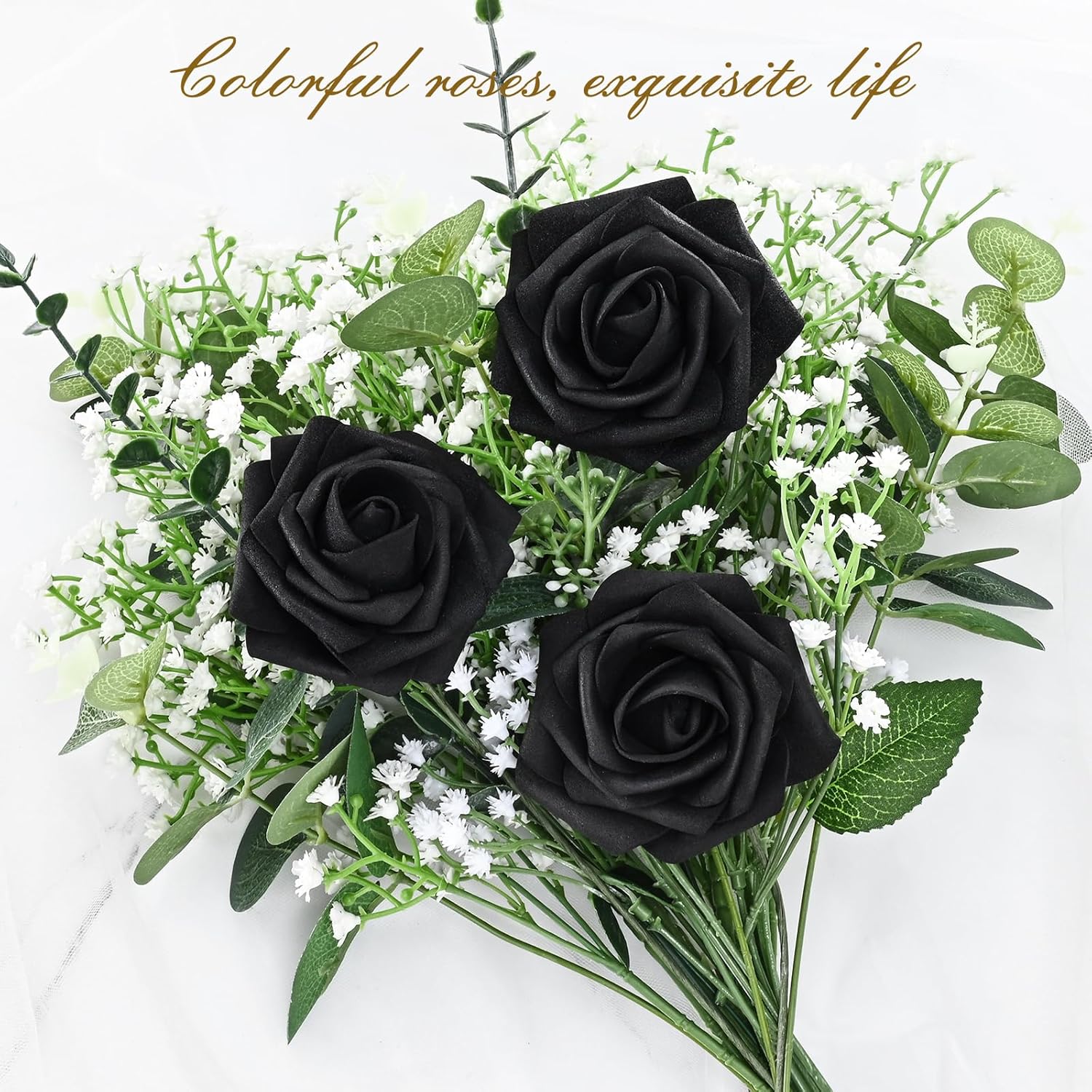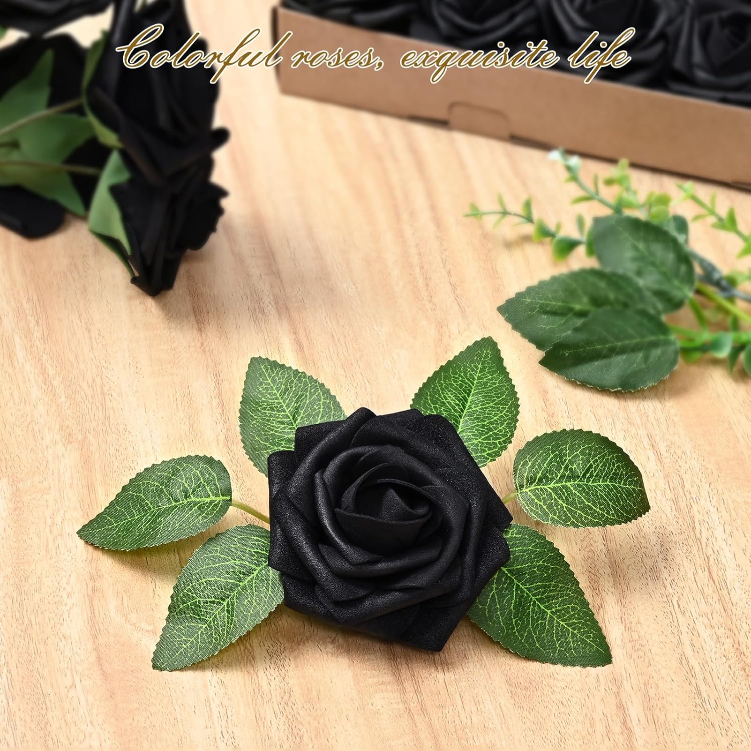 • Kindle Your Creative Flames: The box includes 36 black roses (3" flower head, 8" stem) and 8 green rose leaves, perfect for an array of DIY crafts. Whether creating wedding bouquets, graduation or birthday party ornaments, baby shower decorations, or cake adornments, our faux roses add a touch of class to every important moment.