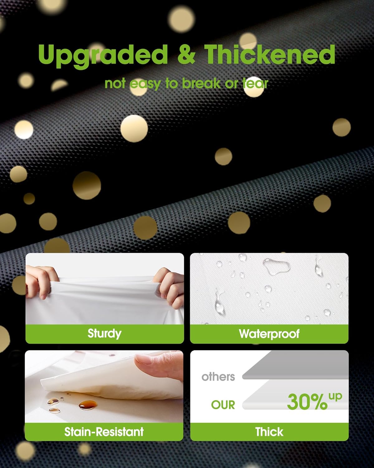 • PREMIUM QUALITY: Made from thickened PEVA material, Pureegg party table cloths disposable are waterproof and stain-resistant. They protect your table from spills and stains without easily ripping or tearing.