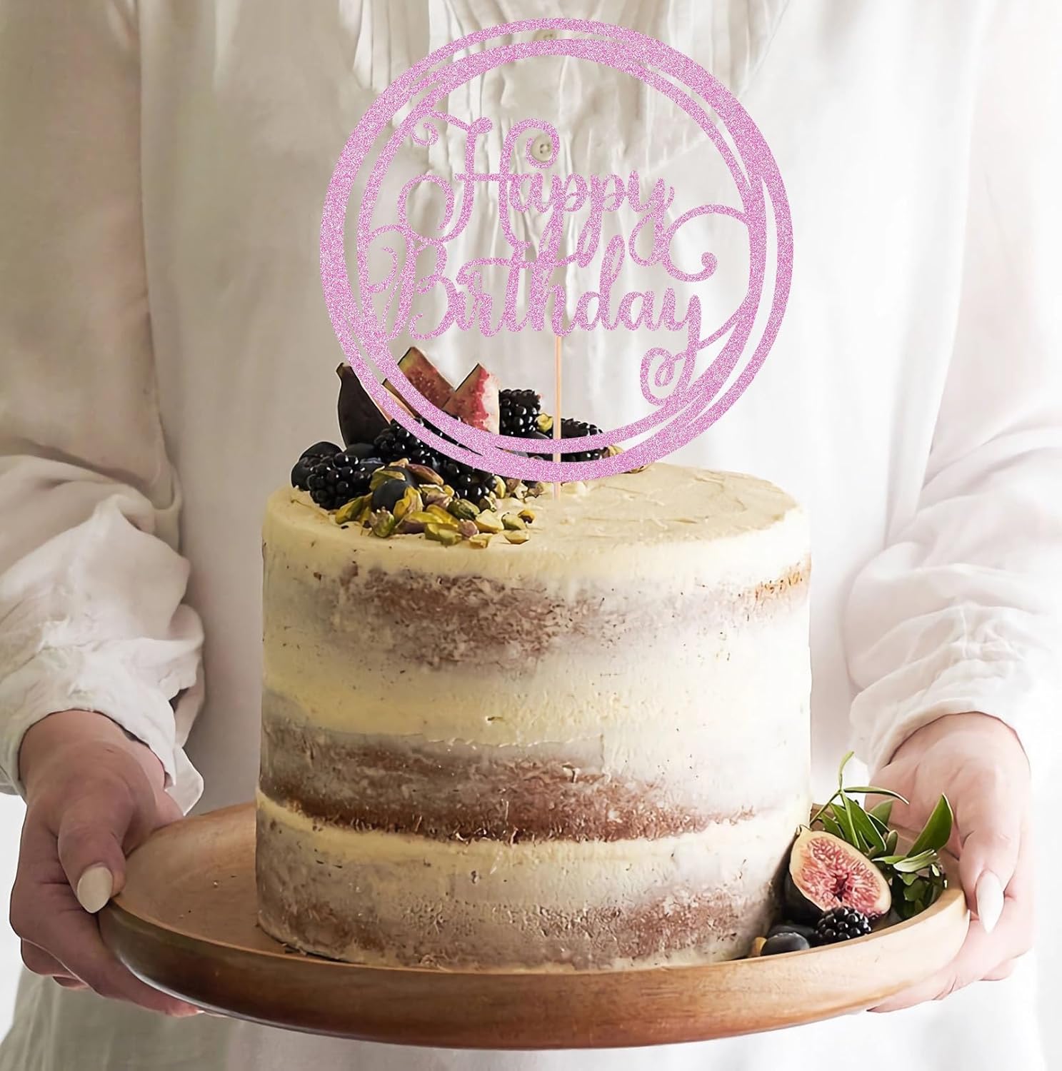 Happy Birthday Cake Topper - Pink Glitter Happy Birthday Cake Decoration Supplies for Children or Adults - Happy Birthday Cake Bunting Decor, Photo Booth Props
