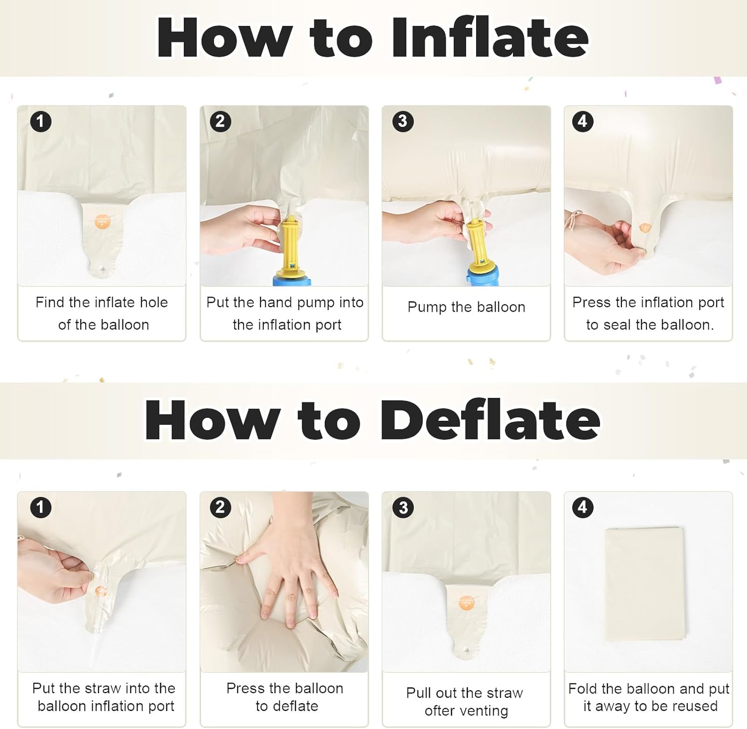 • ๐ŸŽˆ High Quality Material: Our cream alphabet balloons are made from grade mylar material, safe, non-Toxic, high quality, durability, long-lasting, self-inflating and reusable. It can be filled with air or helium, and 90% filling is enough to hold it for a long time. After the inflation is completed, just pinch the inflation port to complete the inflation.