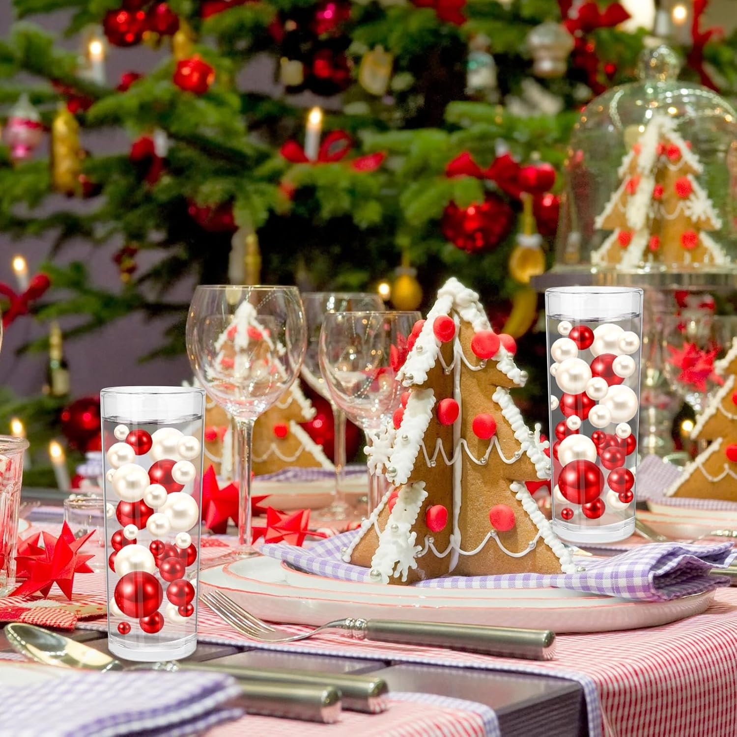 100PCS Red White Faux Pearls Beads for Centerpiece Vases, Vase Filler Faux Pearls, No Holes Filler Beads for Party Anniversary Birthday Wedding Table Decor, 14/20/30mm