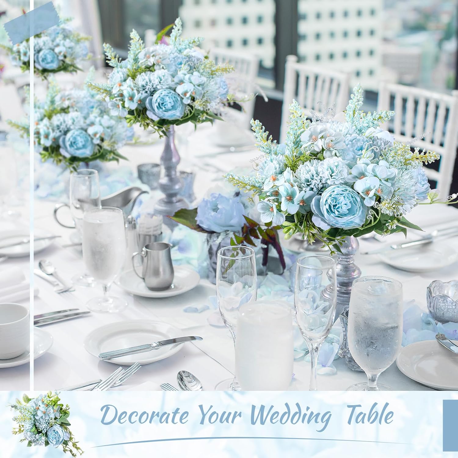 Zeyune 8 Pcs Wedding Silk Flowers Fake Silk Flowers Faux Bouquet Hydrangea Bouquets for Wedding Birthday Party Table Centerpieces Home Decoration(Blue,Peony)